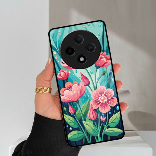 Retro Floral Glossy Glass Case Cover V2 For Oppo