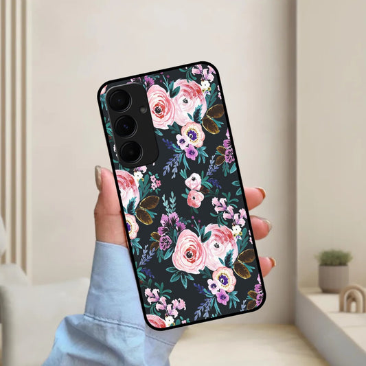 Retro Floral Glossy Glass Case Cover V2 For Samsung