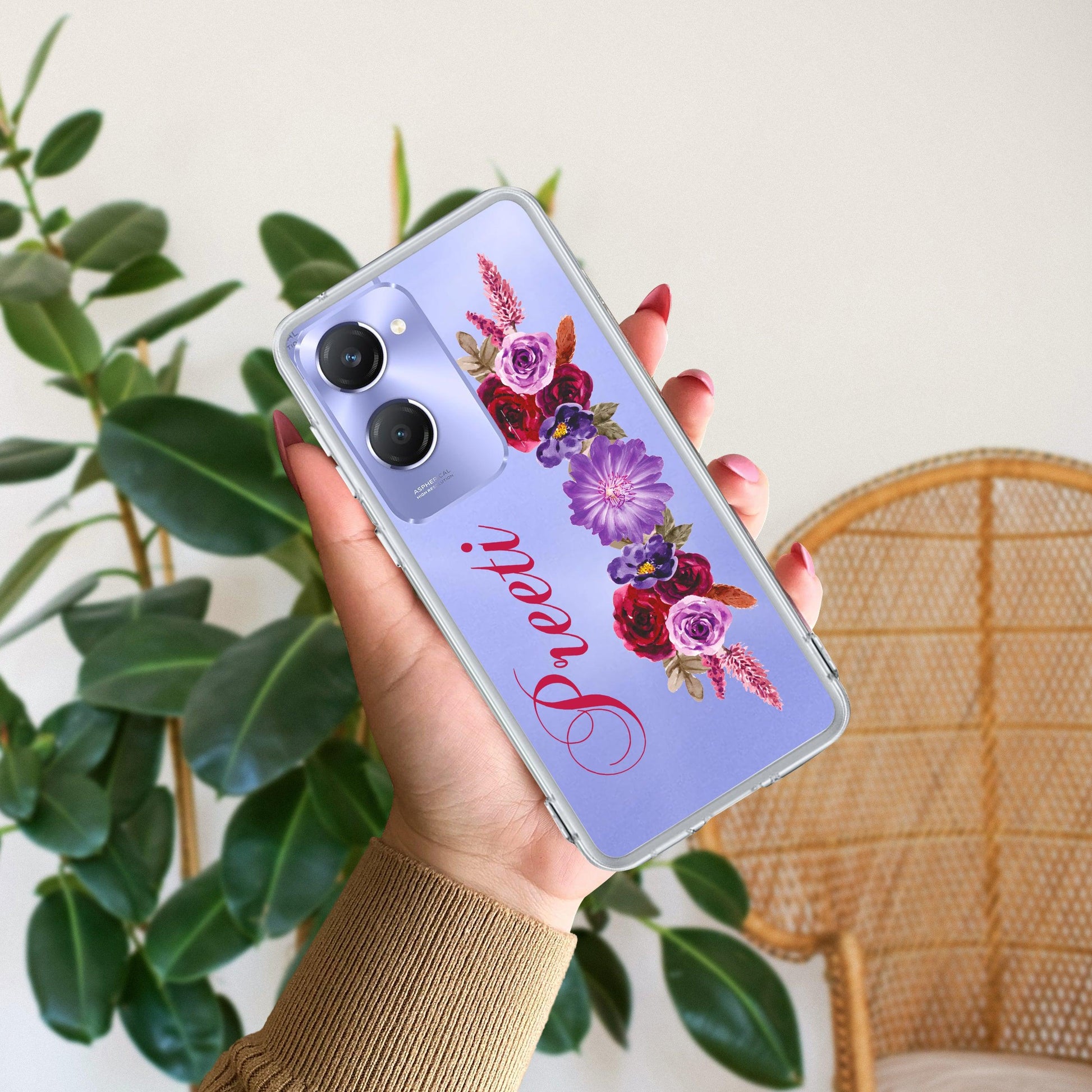 Blue Aster Floral Customize Transparent Silicon Case For Vivo