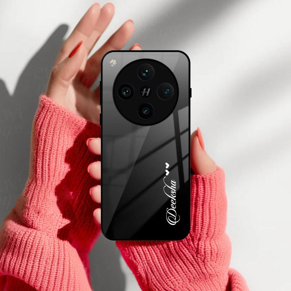 Customize Name Gradient Glass Case Cover Black For Oppo