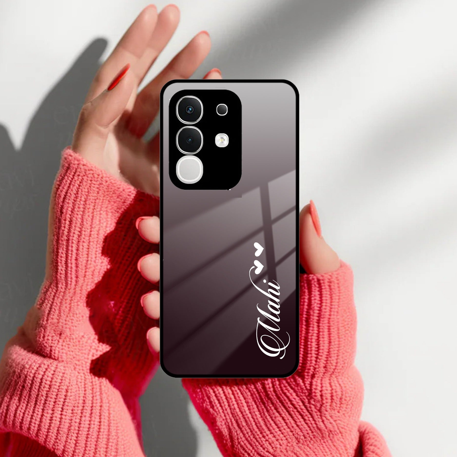 Customize Name Gradient Glass Case Cover Grey For Vivo