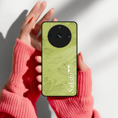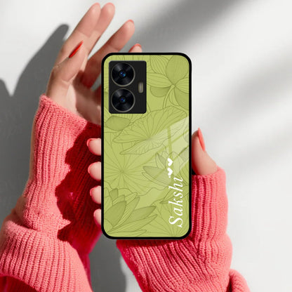 Customized luxury Mint Green leaves Glass Case Cover For Realme/Narzo