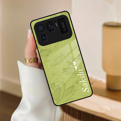 Customized luxury Mint Green leaves Glass Case Cover For Redmi/Xiaomi