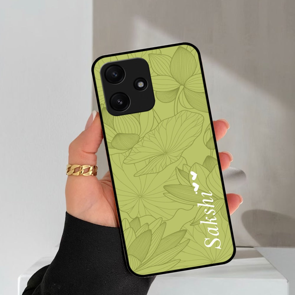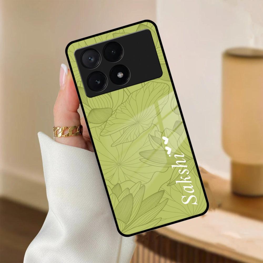 Customized luxury Mint Green leaves Glossy Metal Case Cover For Poco
