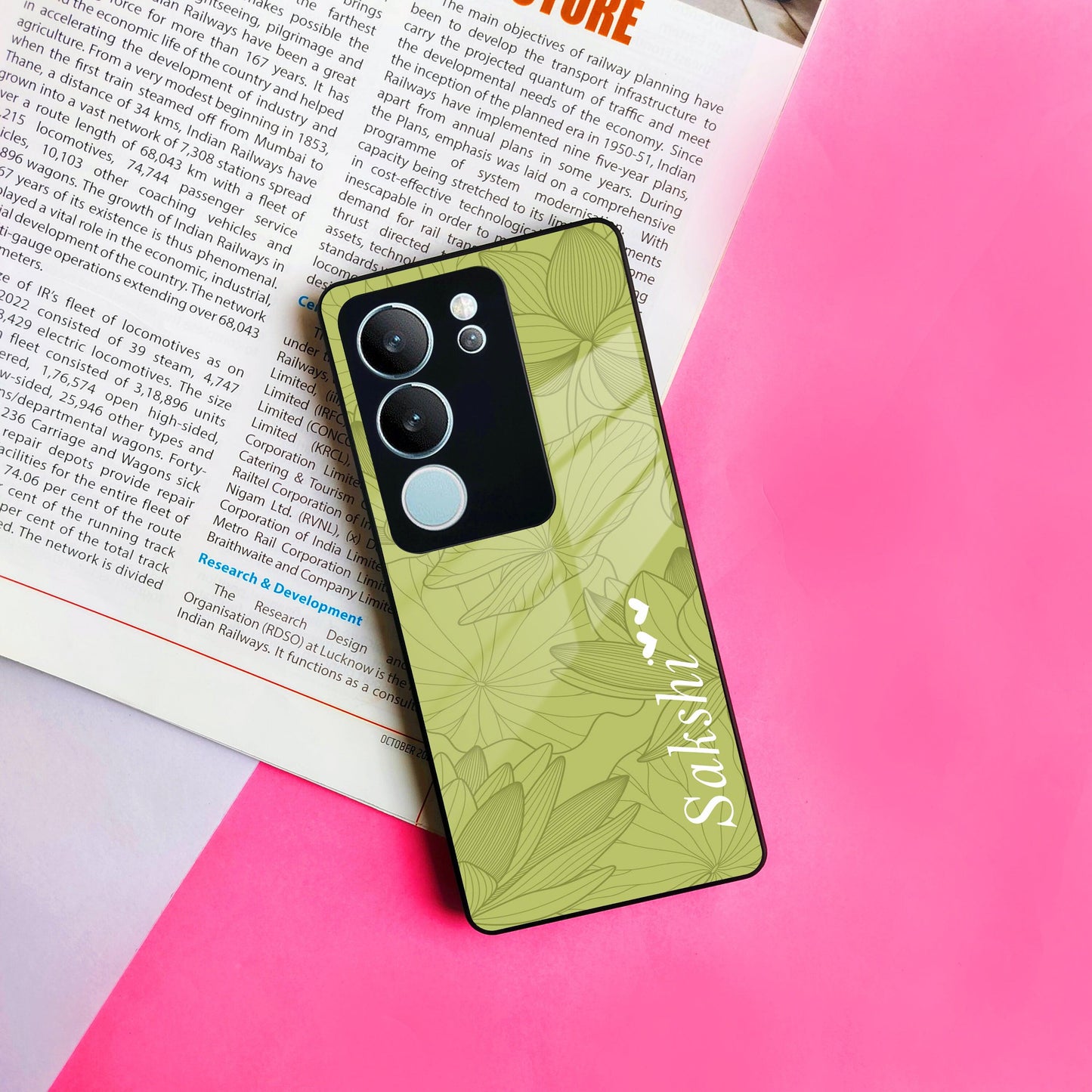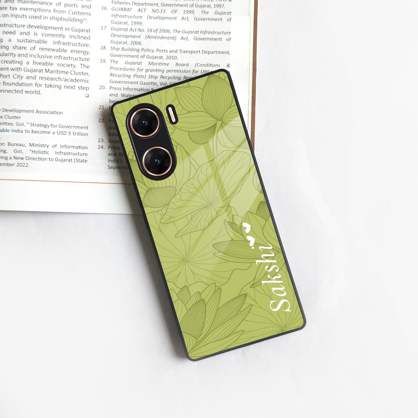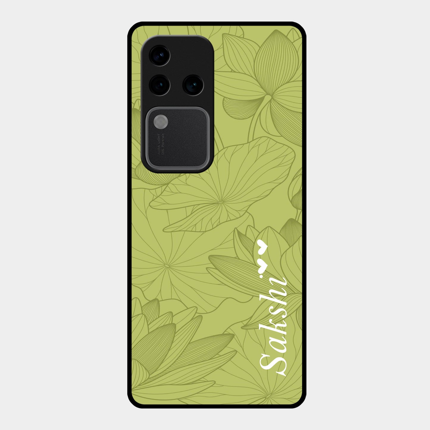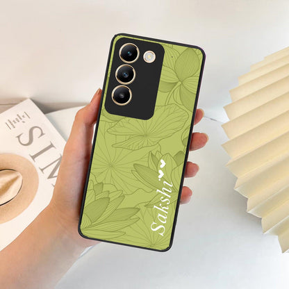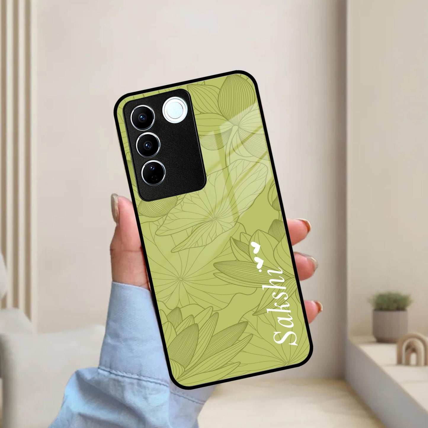 Customized luxury Mint Green leaves Glossy Metal Case Cover For Vivo