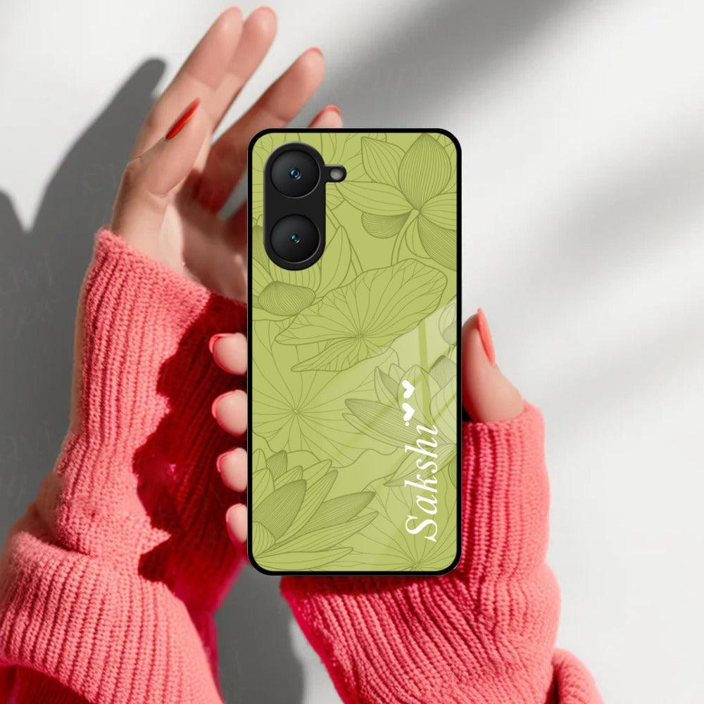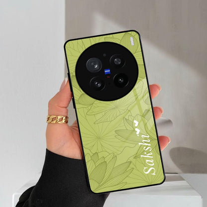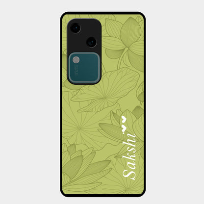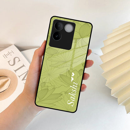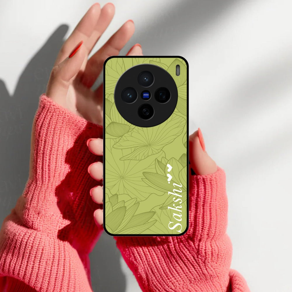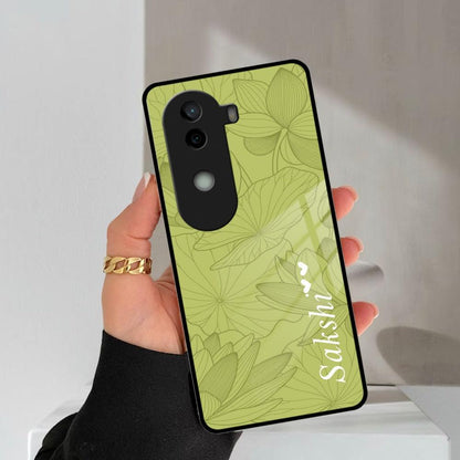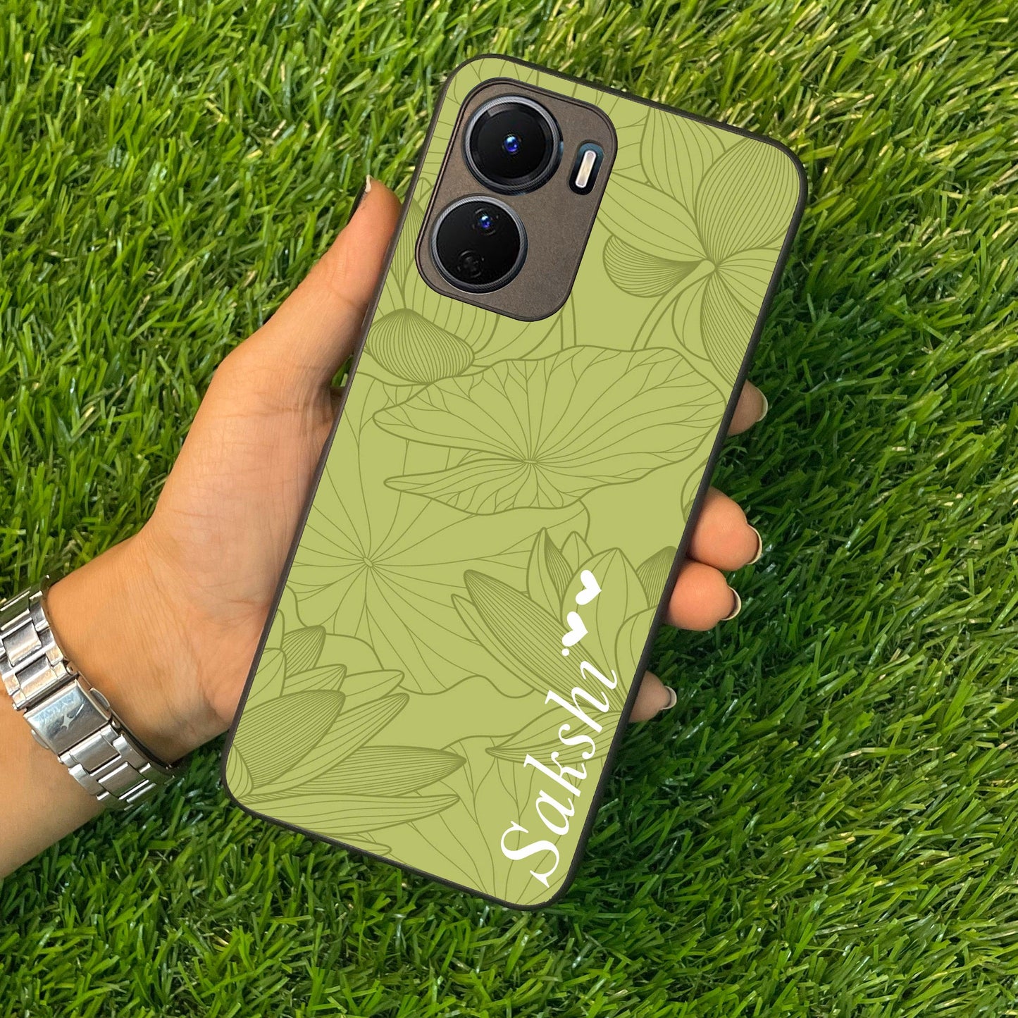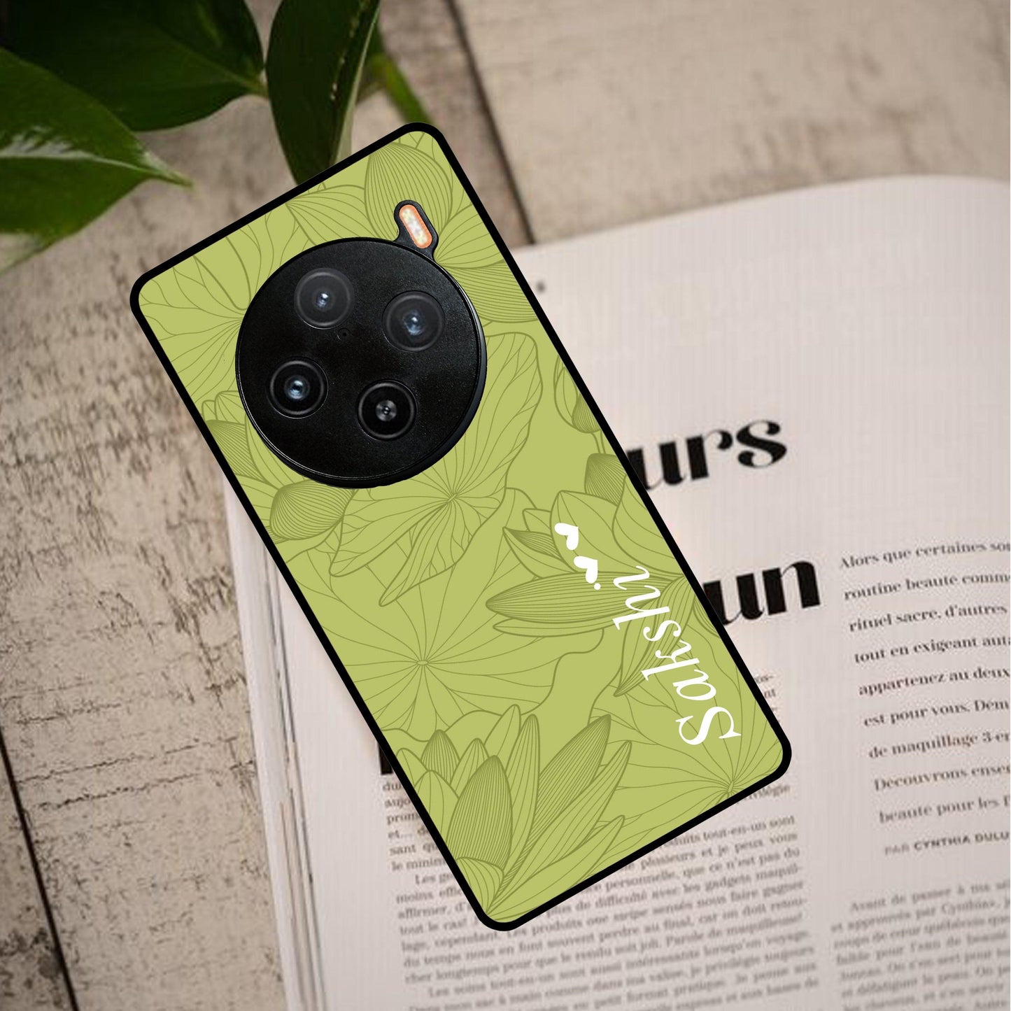 Customized luxury Mint Green leaves Glossy Metal Case Cover For Vivo