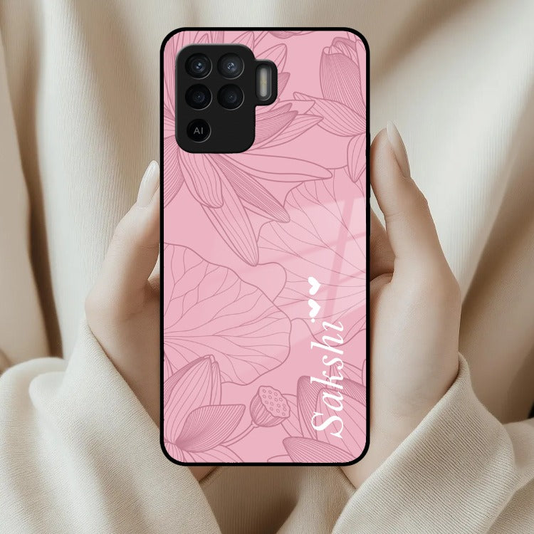 Customized luxury Peach leaves Glass Case Cover For Oppo