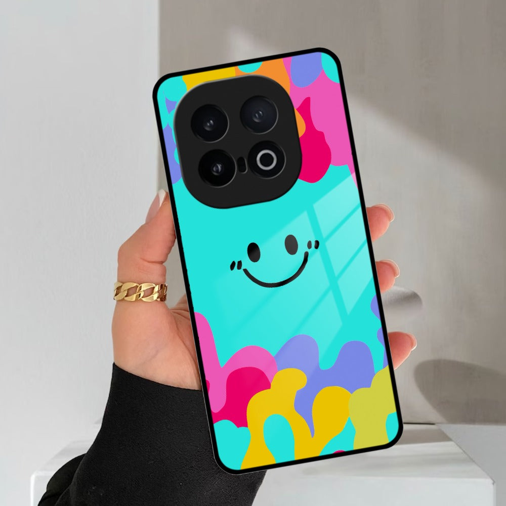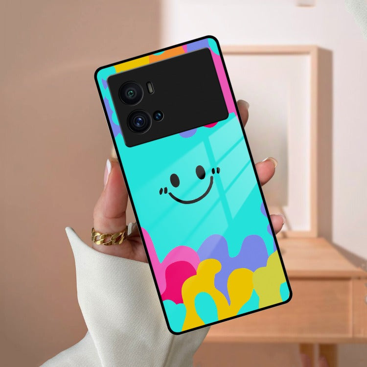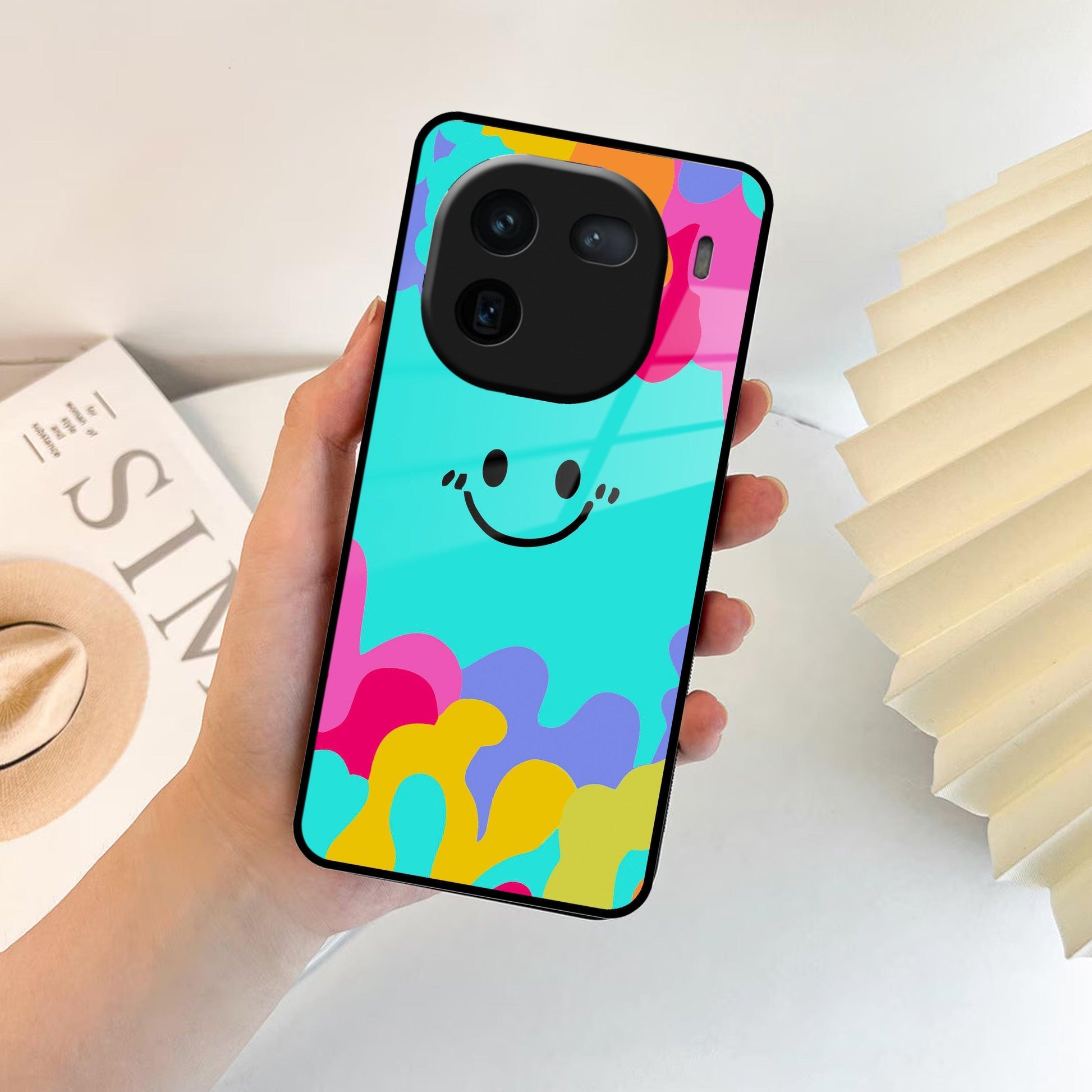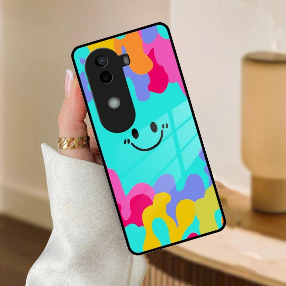 Cute Blue Smiley Multicolor Glass Case For Vivo