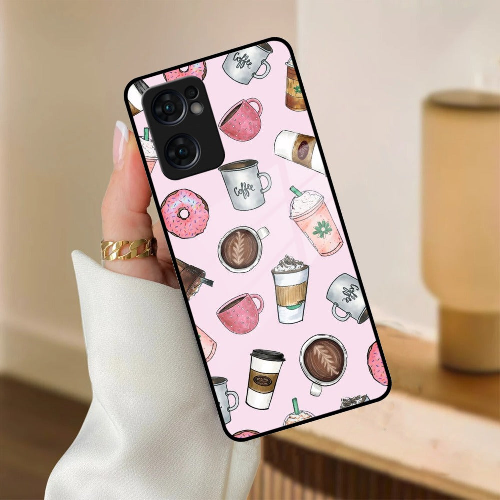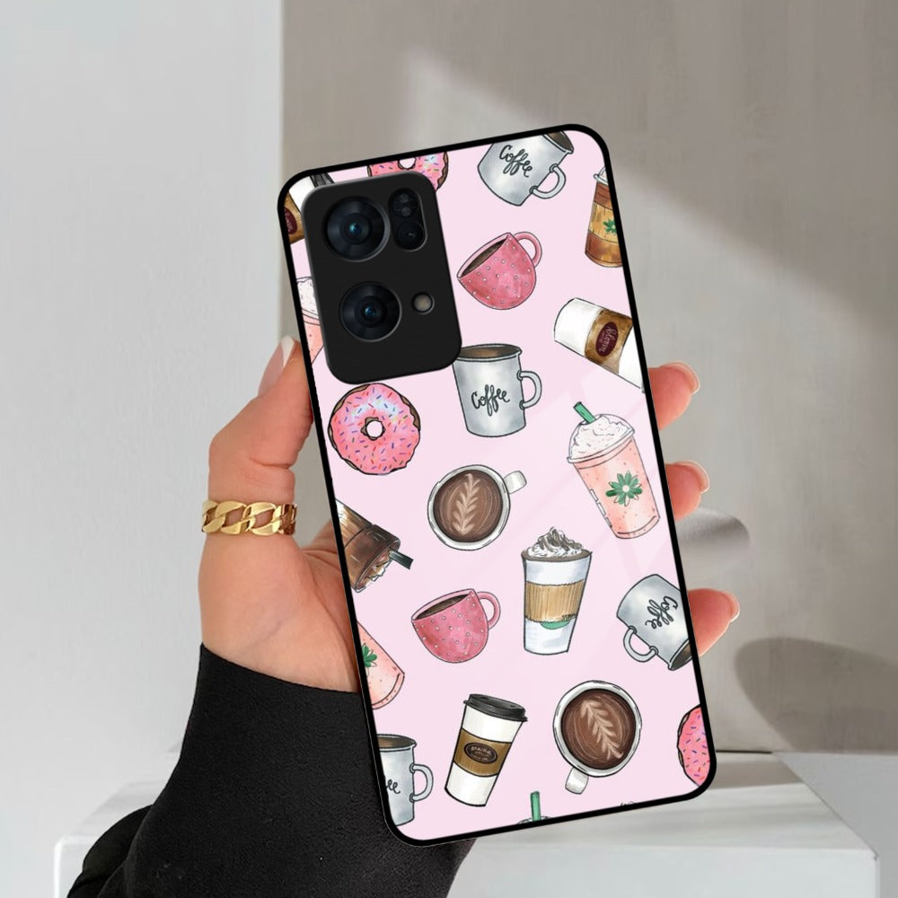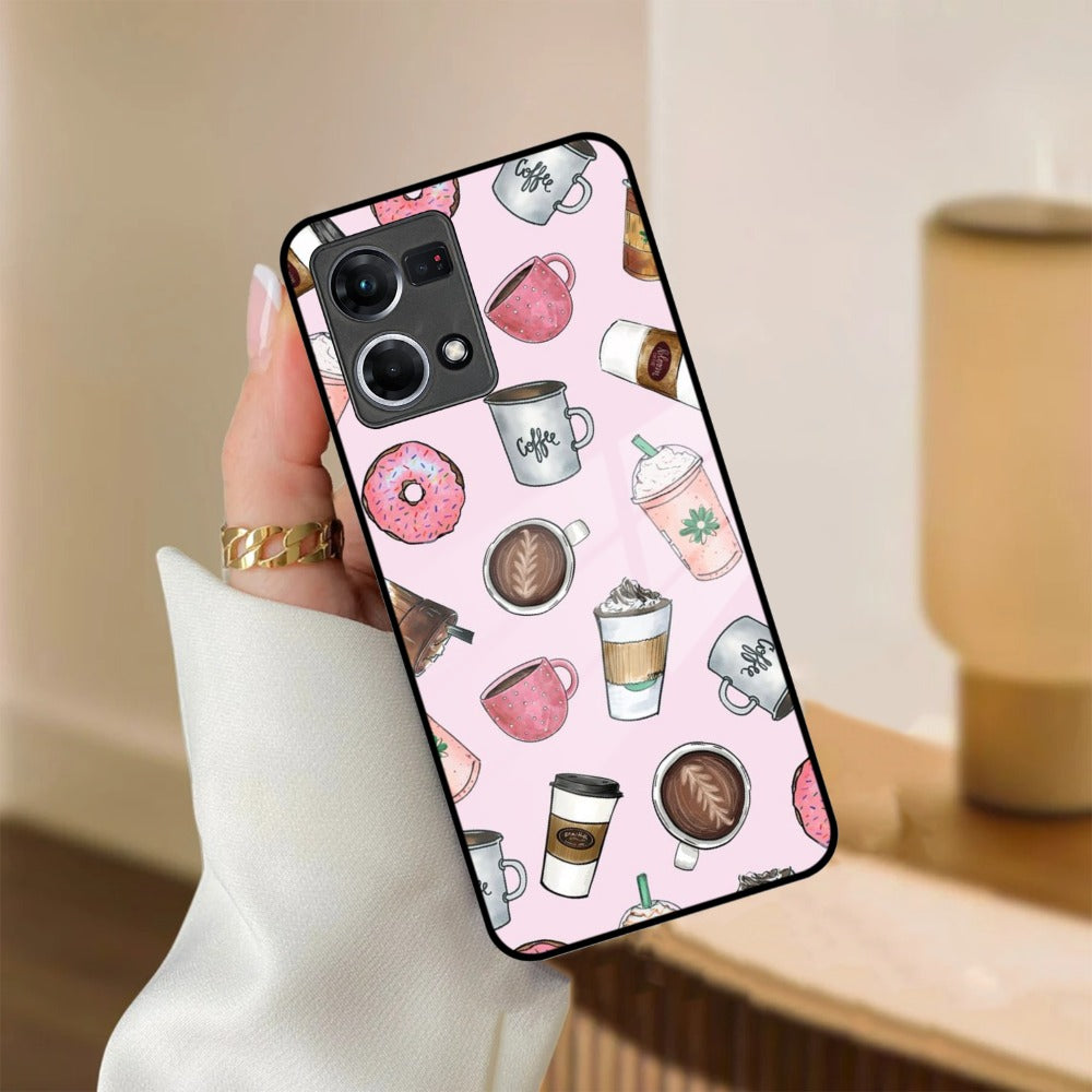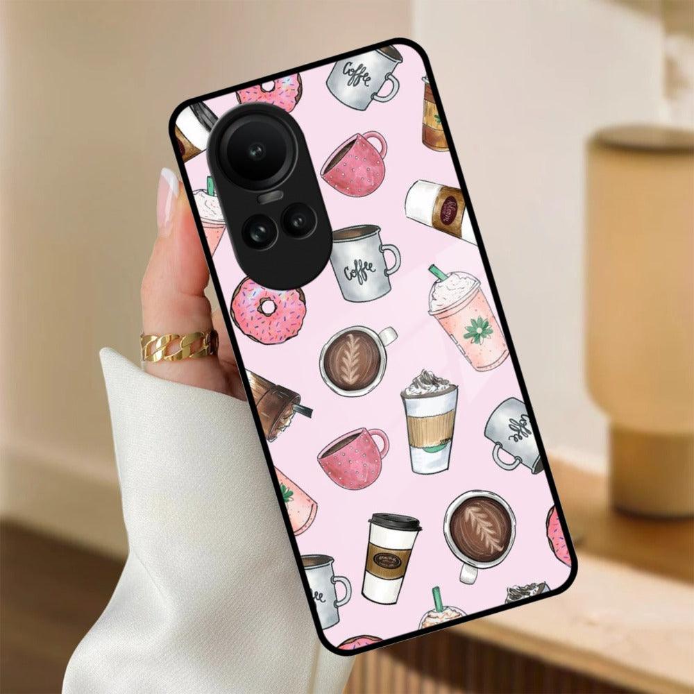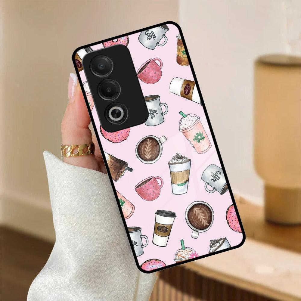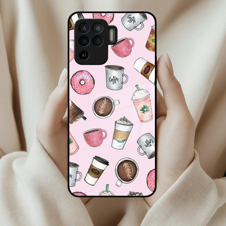 Cute Coffee Snacks Glass Case Cover For Oppo