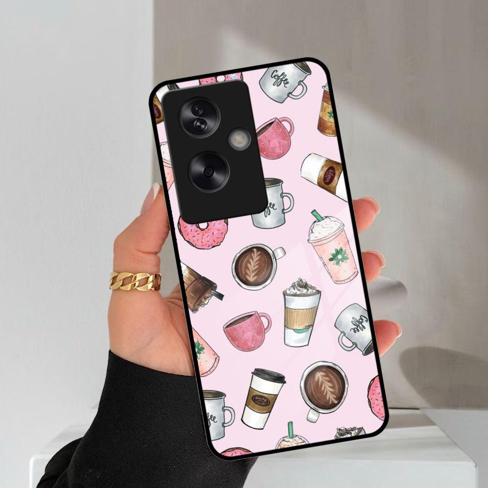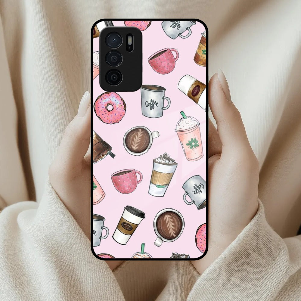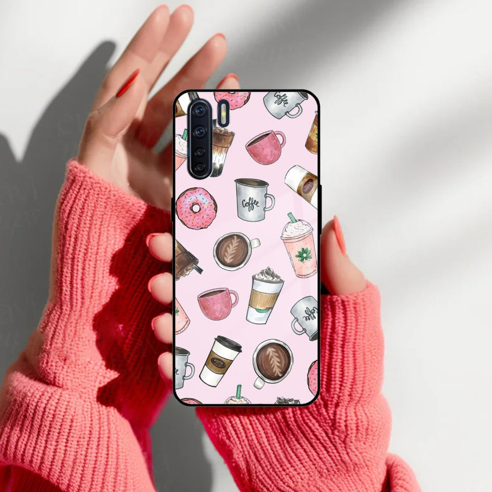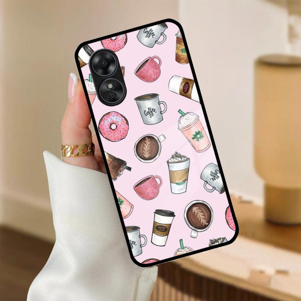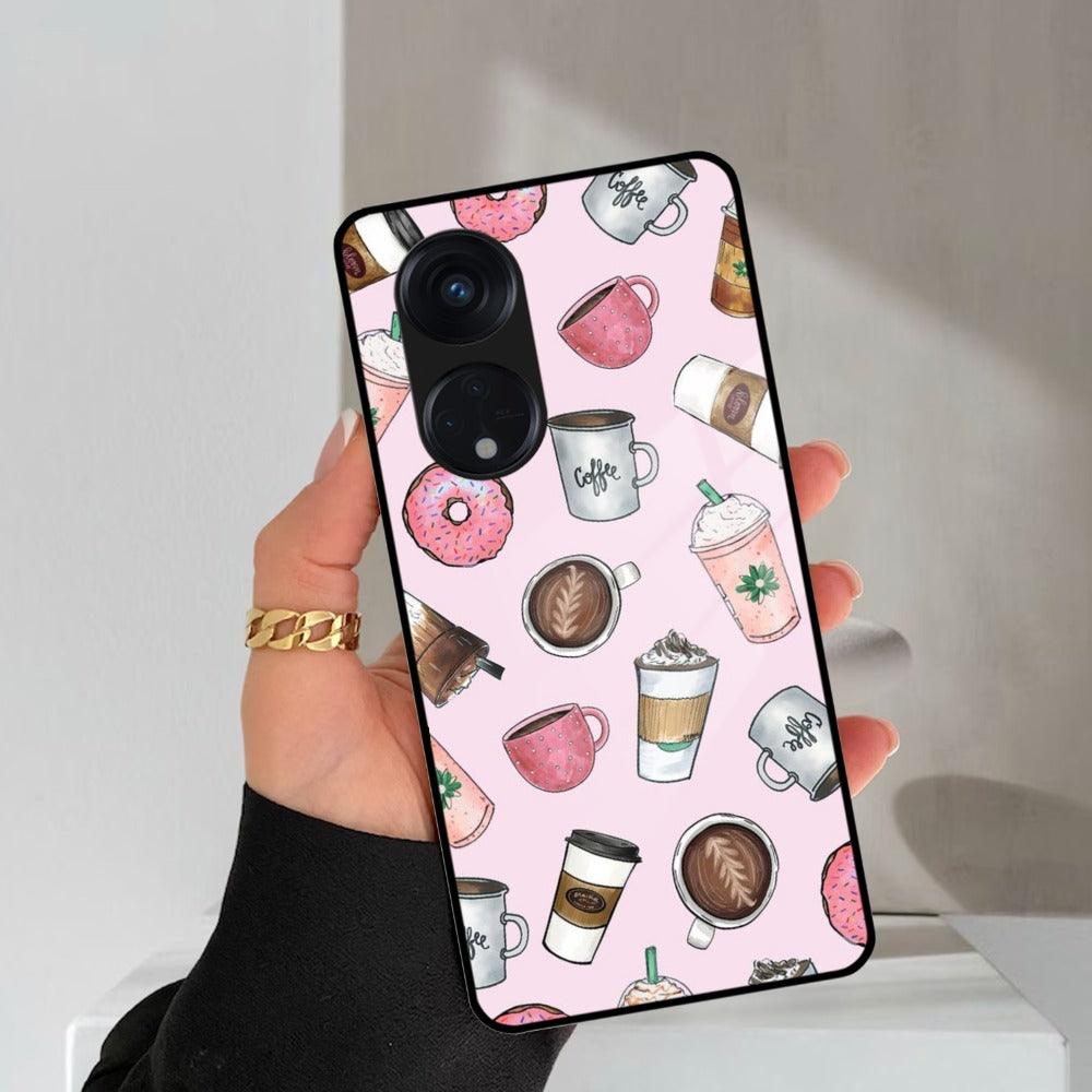 Cute Coffee Snacks Glass Case Cover For Oppo