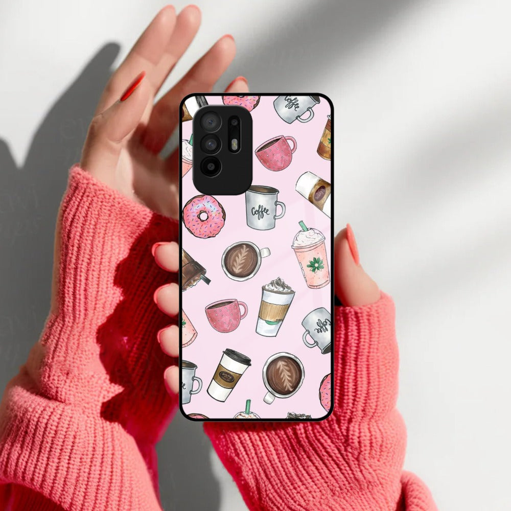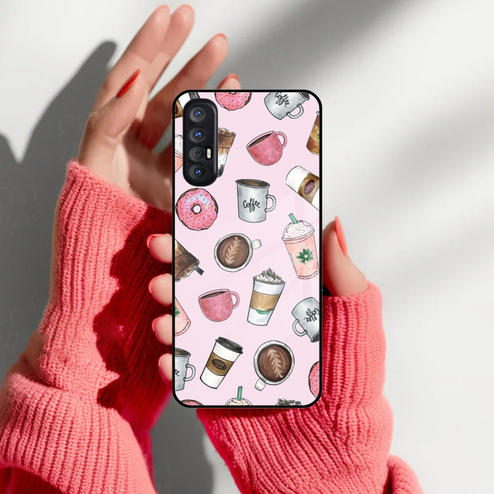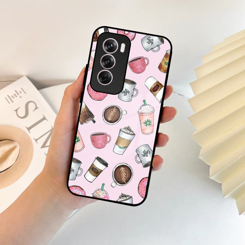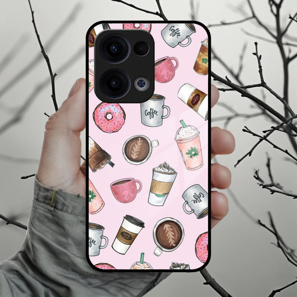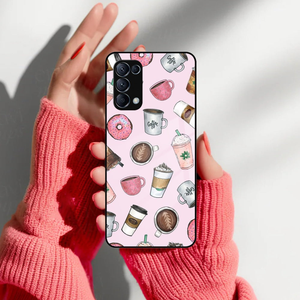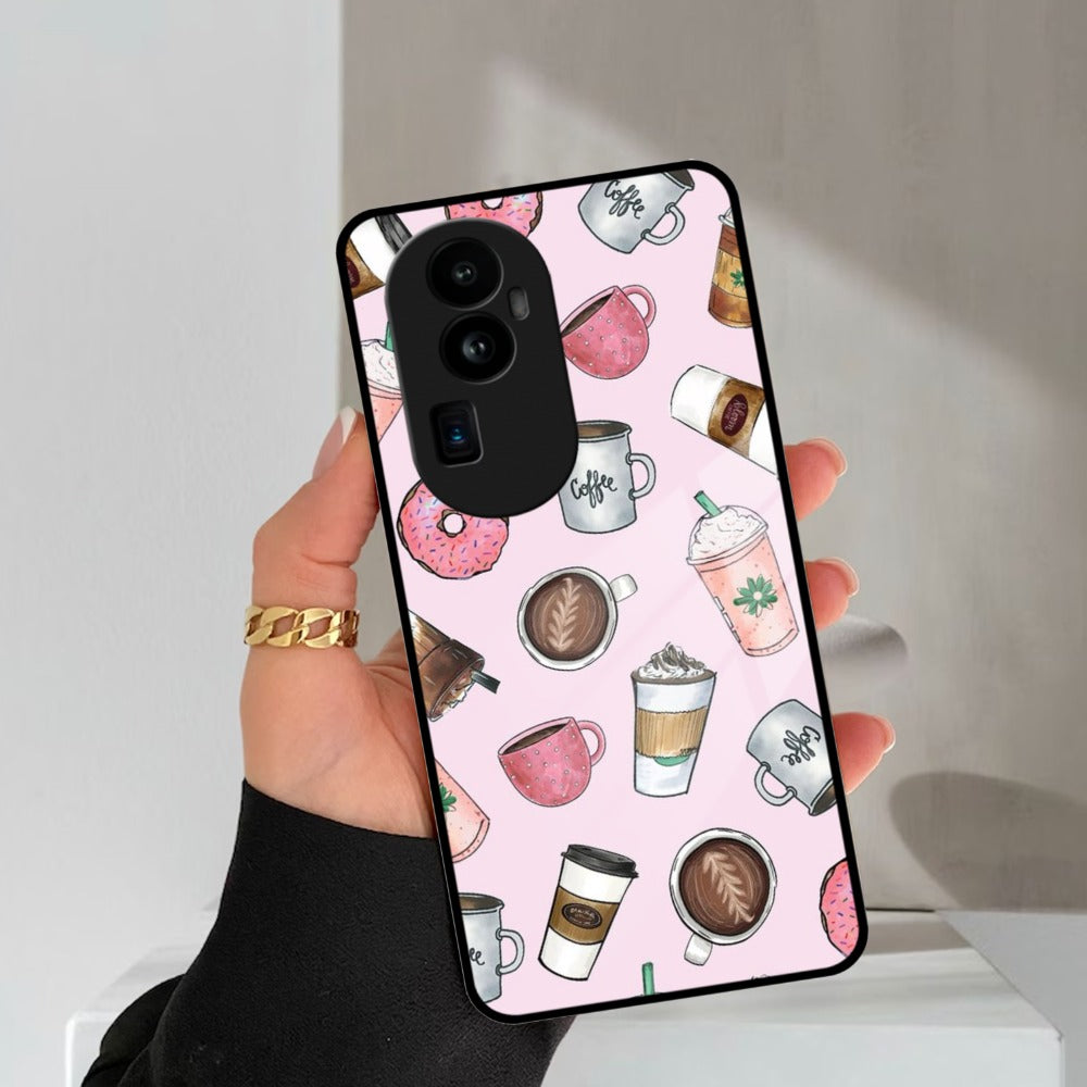 Cute Coffee Snacks Glass Case Cover For Oppo