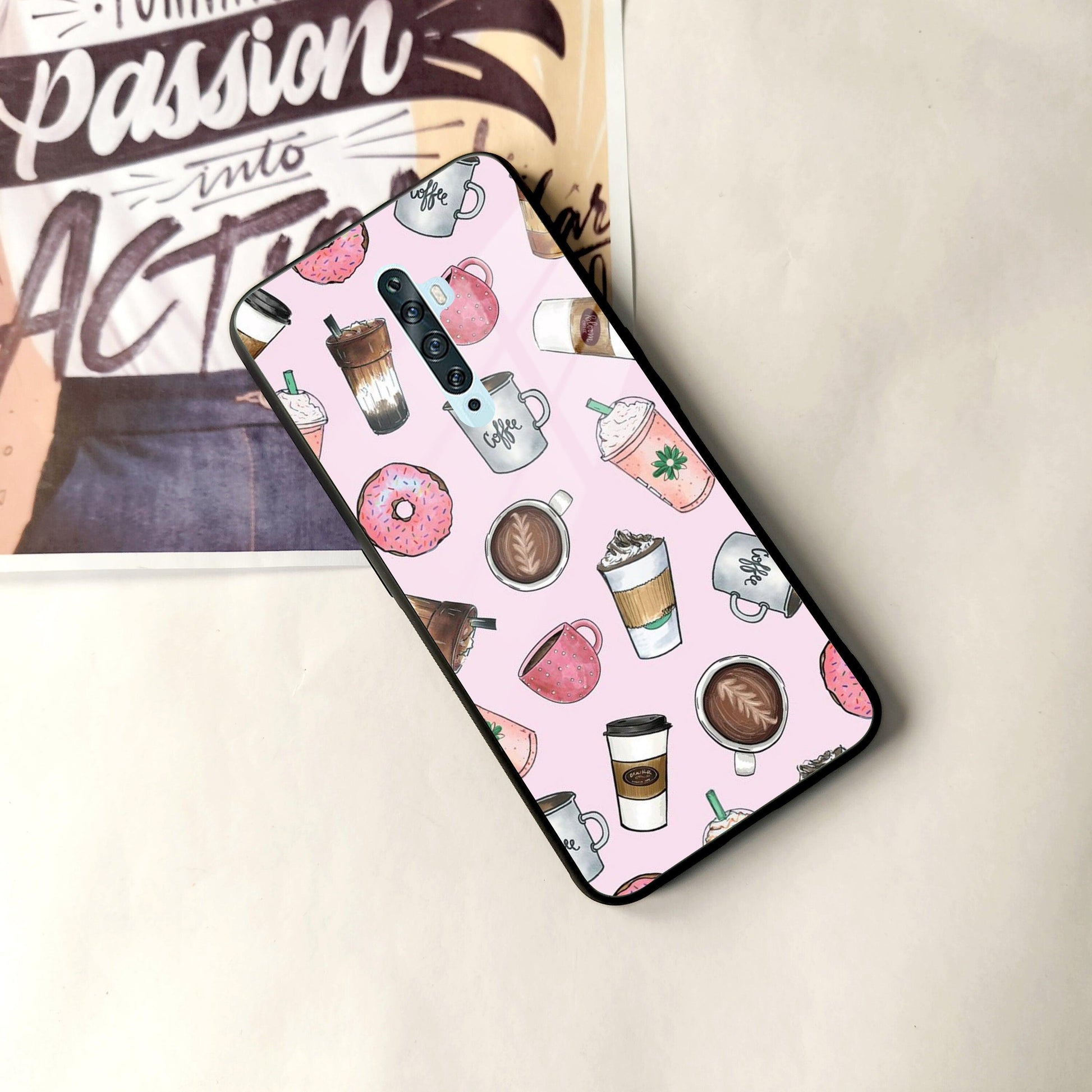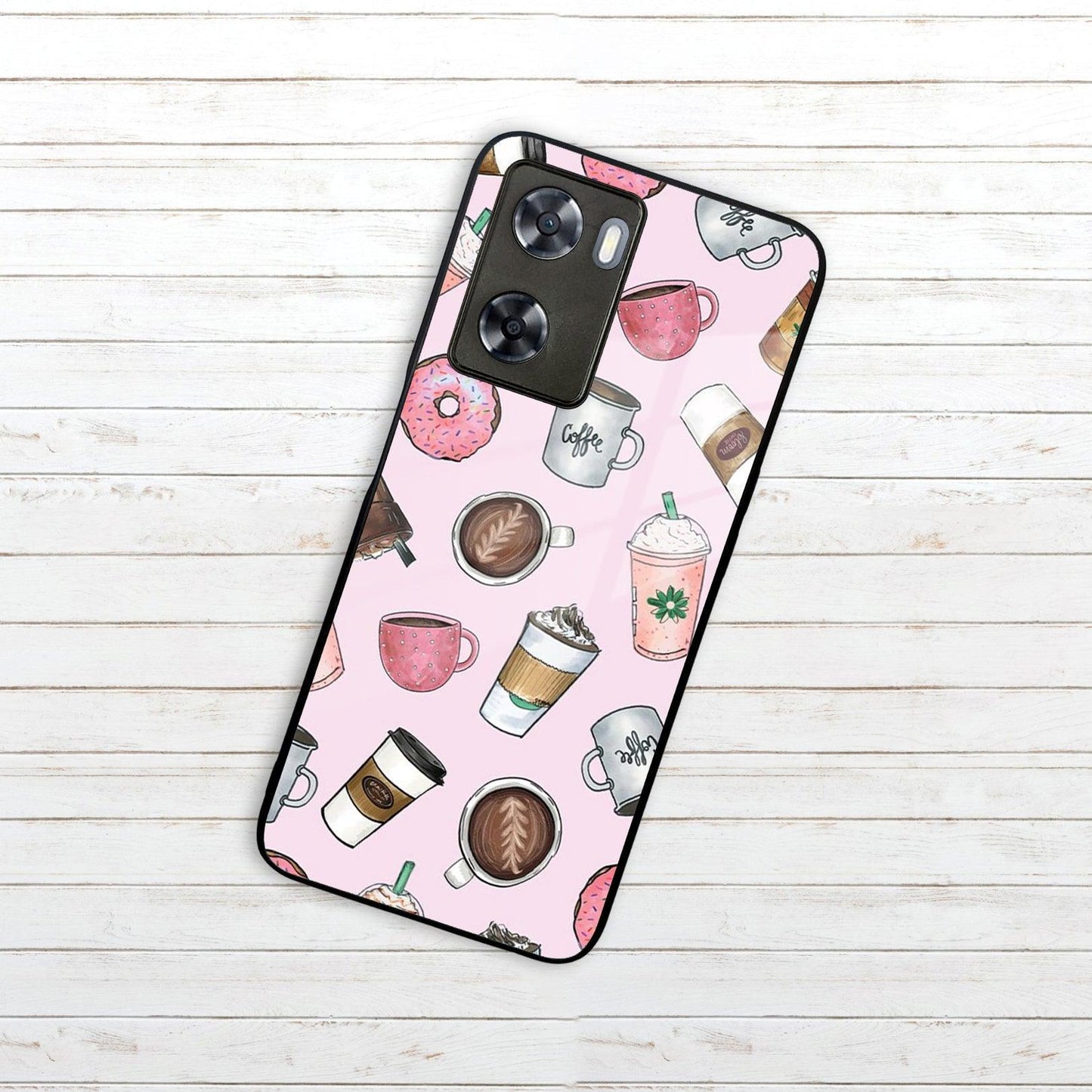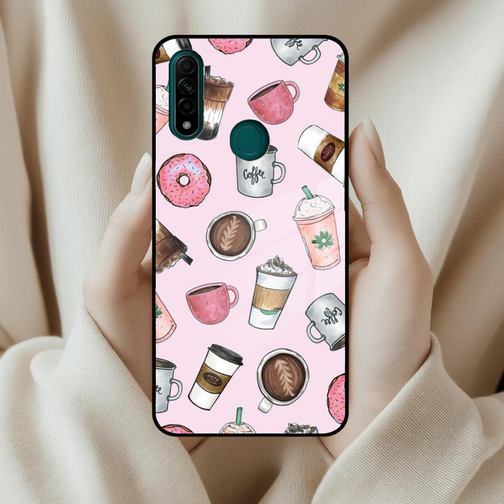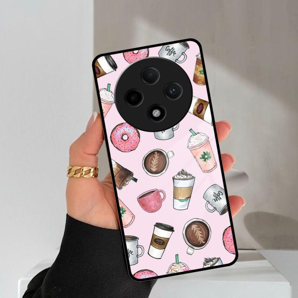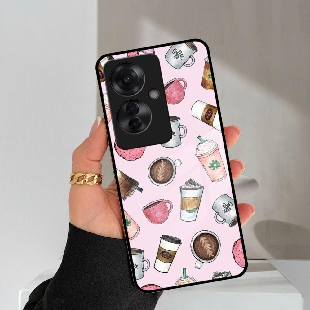 Cute Coffee Snacks Glass Case Cover For Oppo