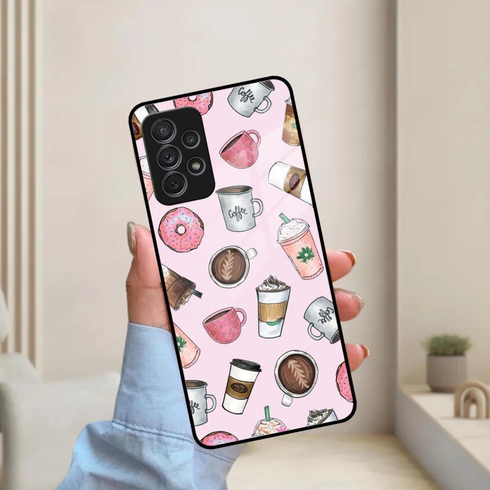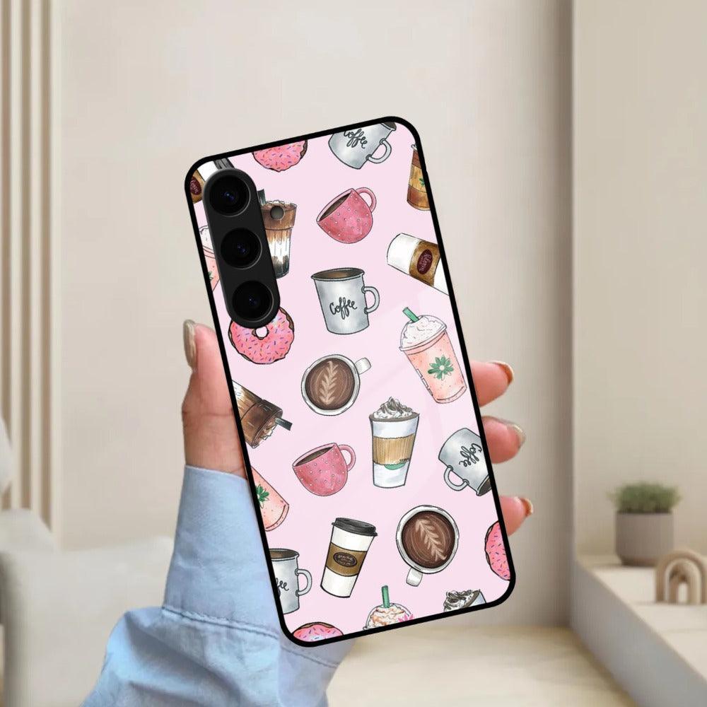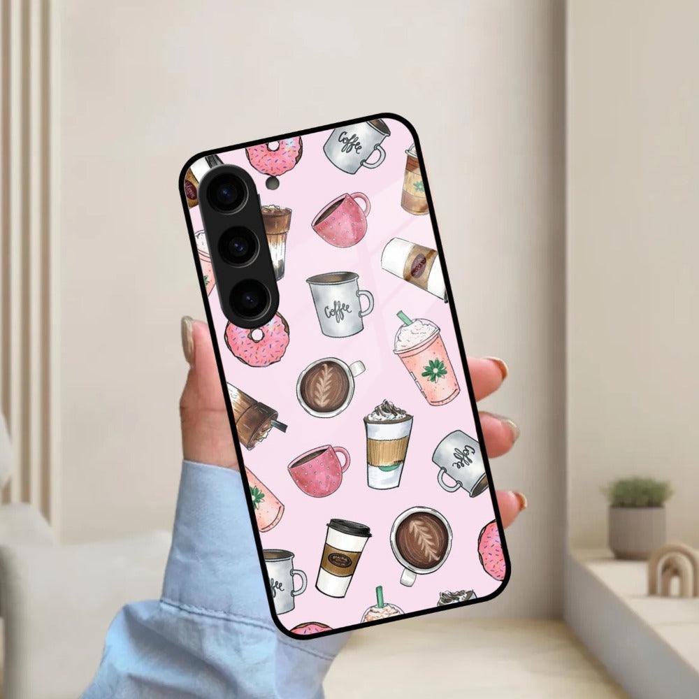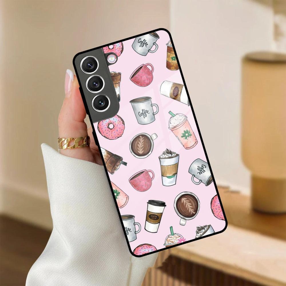 Cute Coffee Snacks Glass Case Cover For Samsung