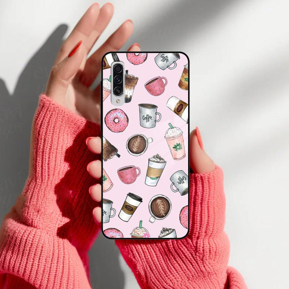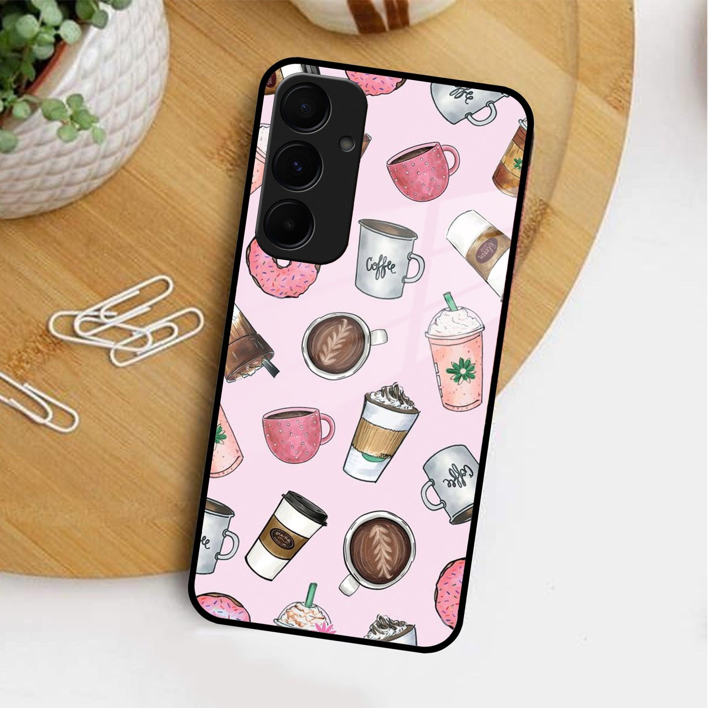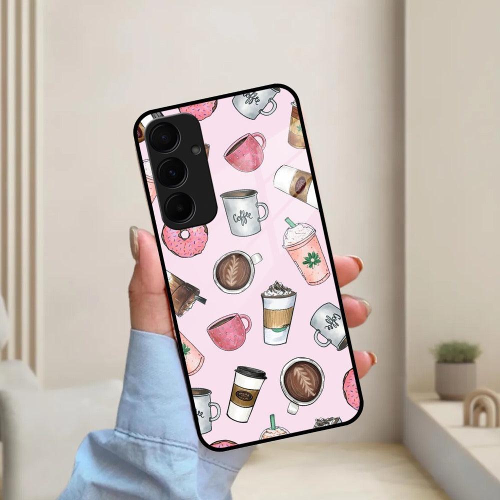 Cute Coffee Snacks Glass Case Cover For Samsung