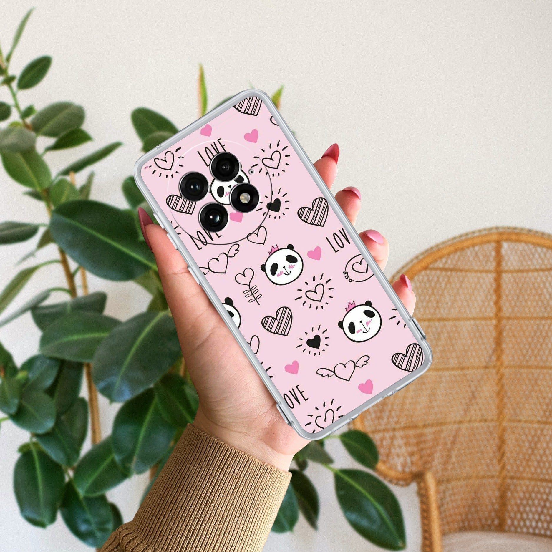 Cute Pink Panda Transparent Silicon Case For OnePlus