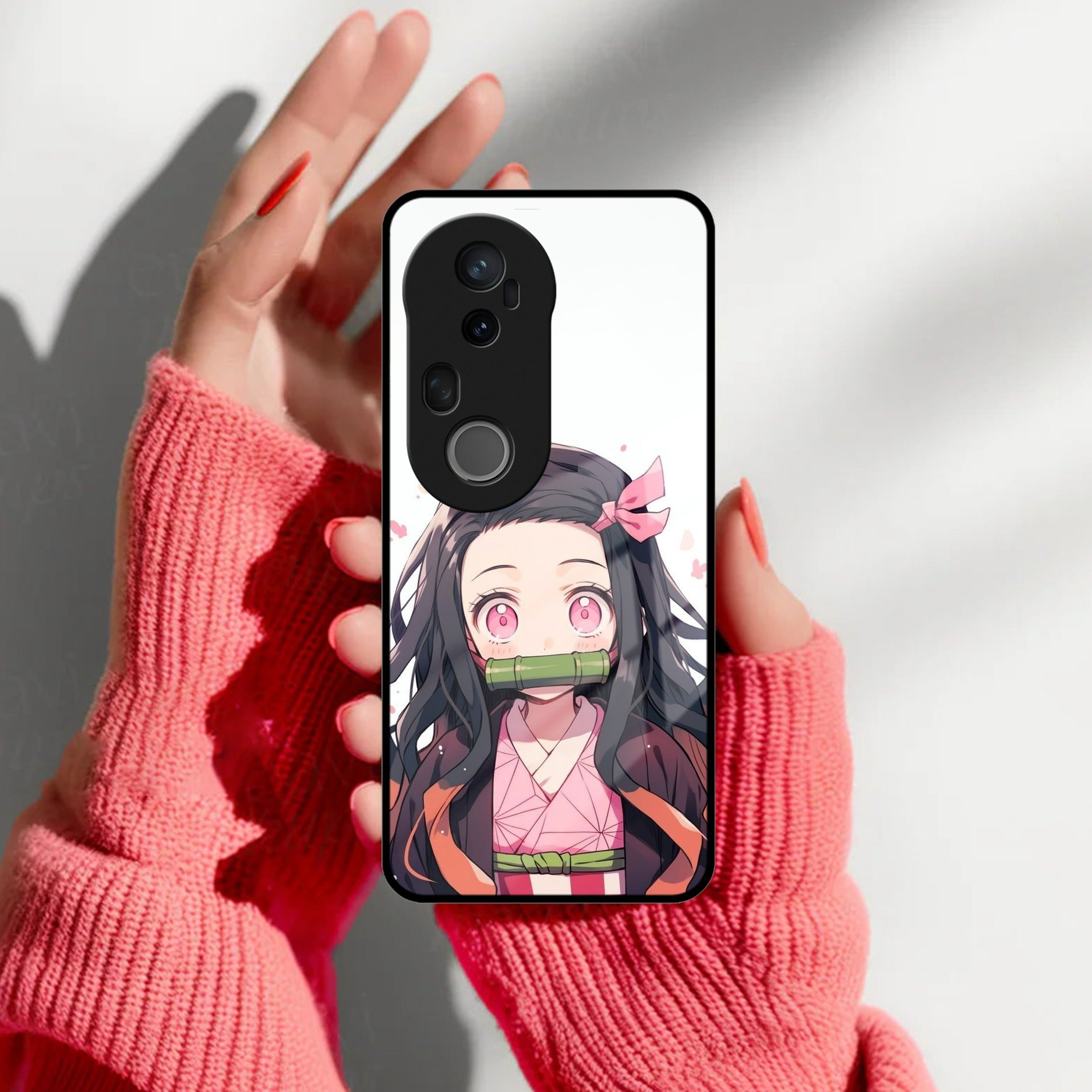 Unleash elegance and strength with the Demon Princess Glass Case Cover for Vivo. Inspired by Nezuko Kamado from Demon Slayer, this case beautifully blends grace and power. The glossy tempered glass back showcases the stunning Demon Princess artwork, while the soft TPU frame provides superior protection and grip for everyday use.