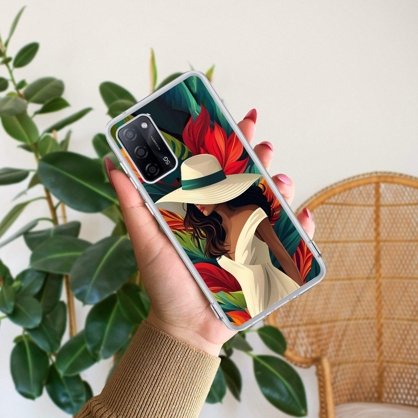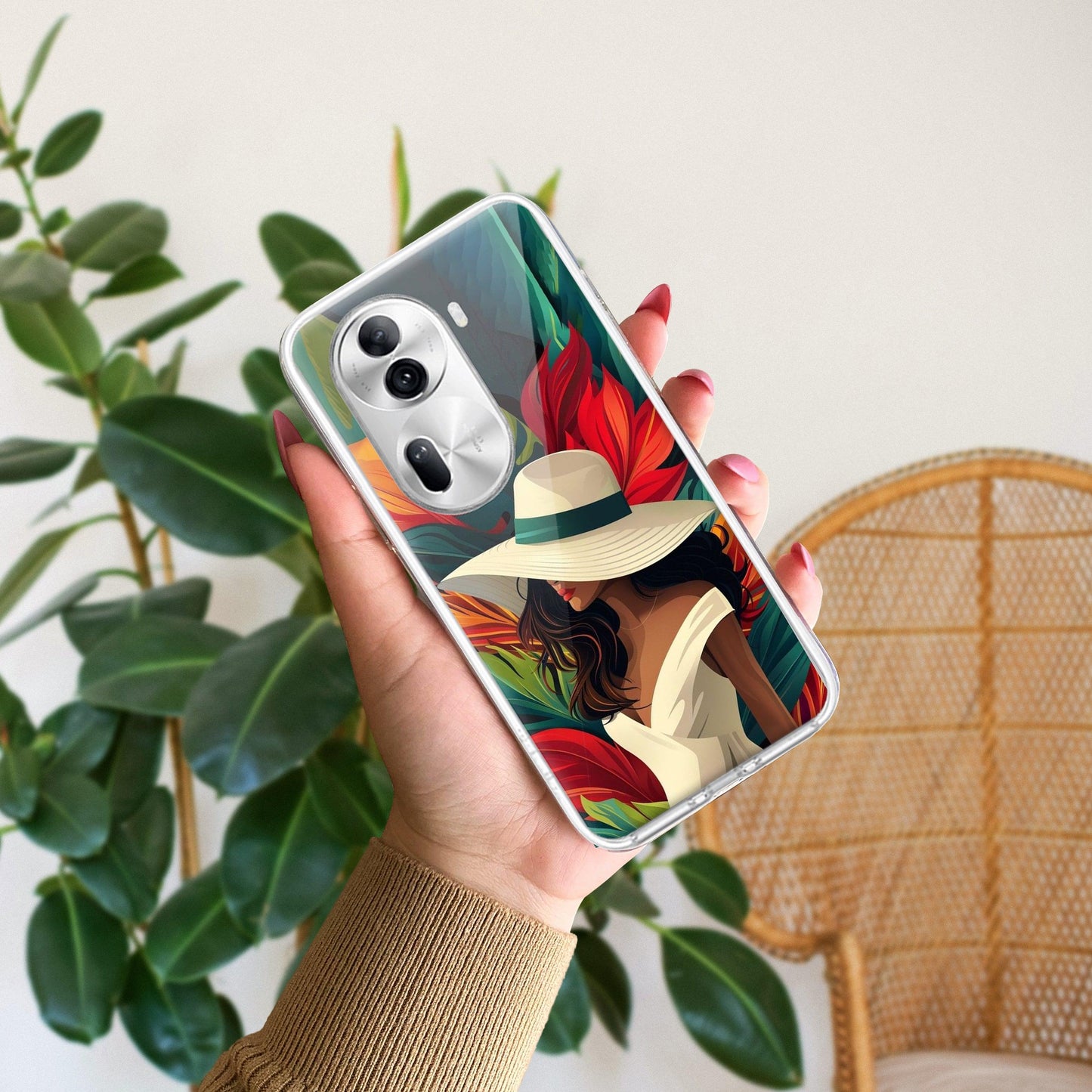 Fashionable Girl Hat Style Tropical Elegance Transparent Silicone Case for Oppo