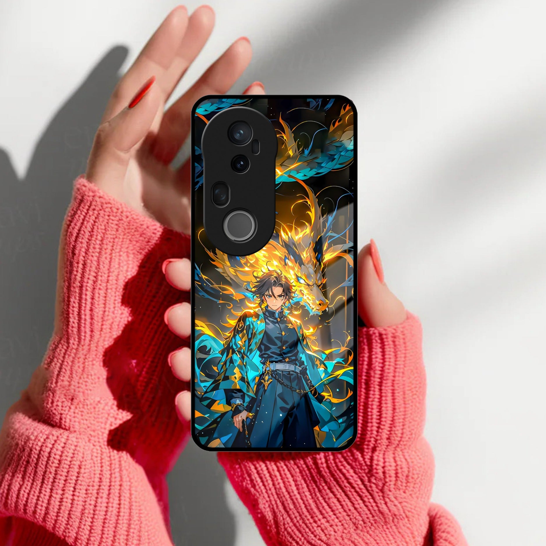 Fire Soul Tanjiro Glass Case Cover For Vivo