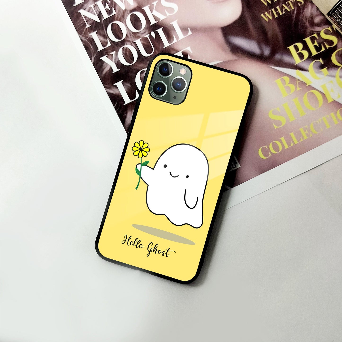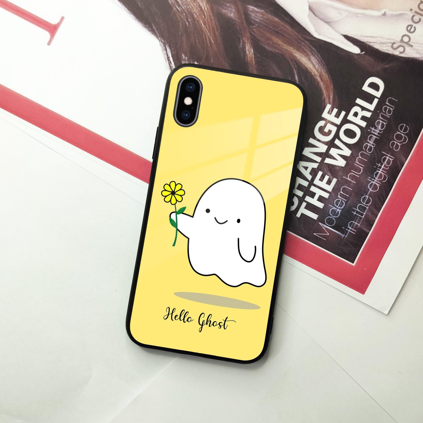 Ghost With Flower Glass Case Cover For iPhone