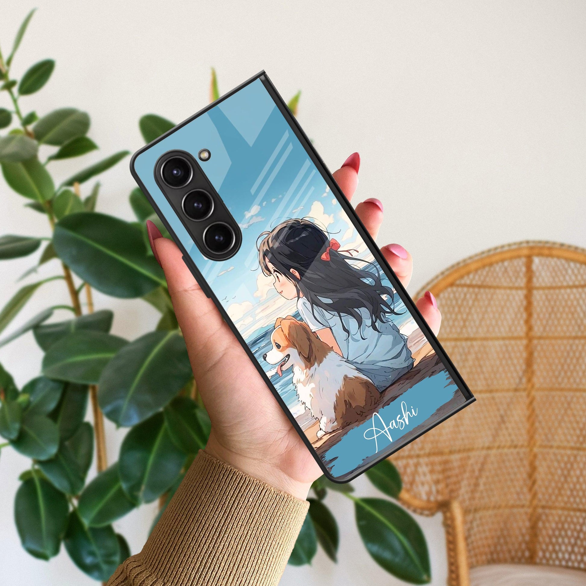 Girl With Dog Glossy Metal Case Cover For Samsung
