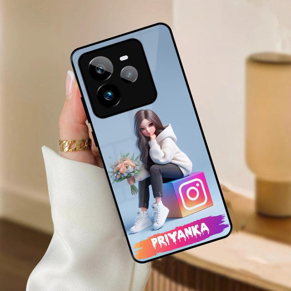 Girl With Flower Glossy Metal Case Cover For Realme