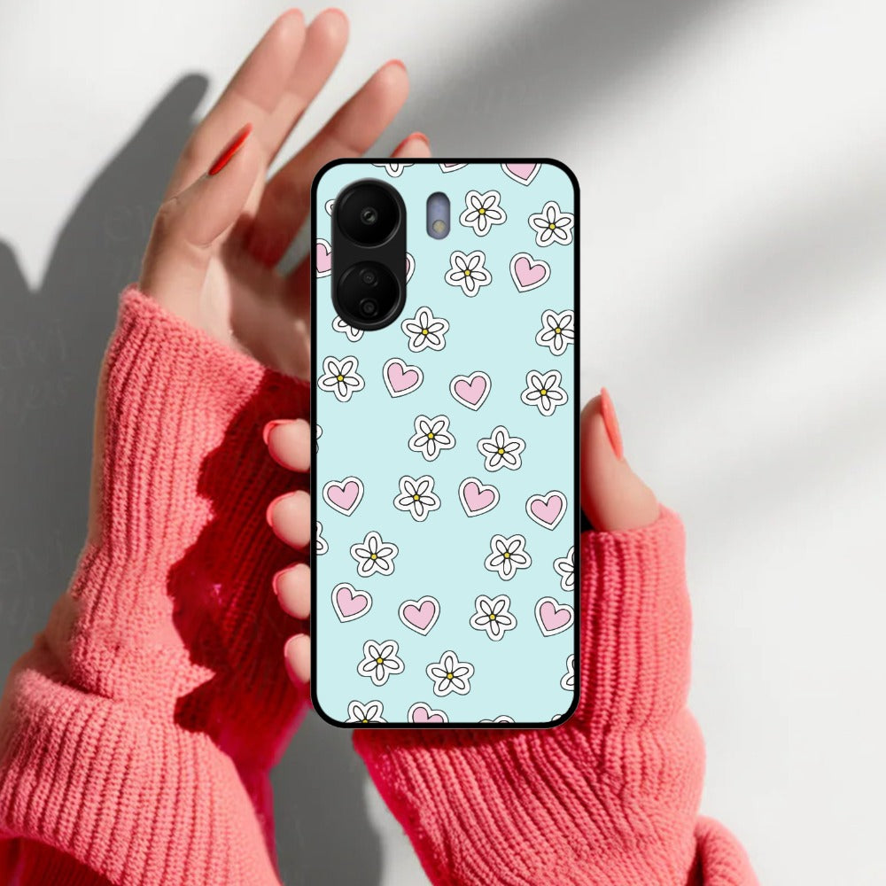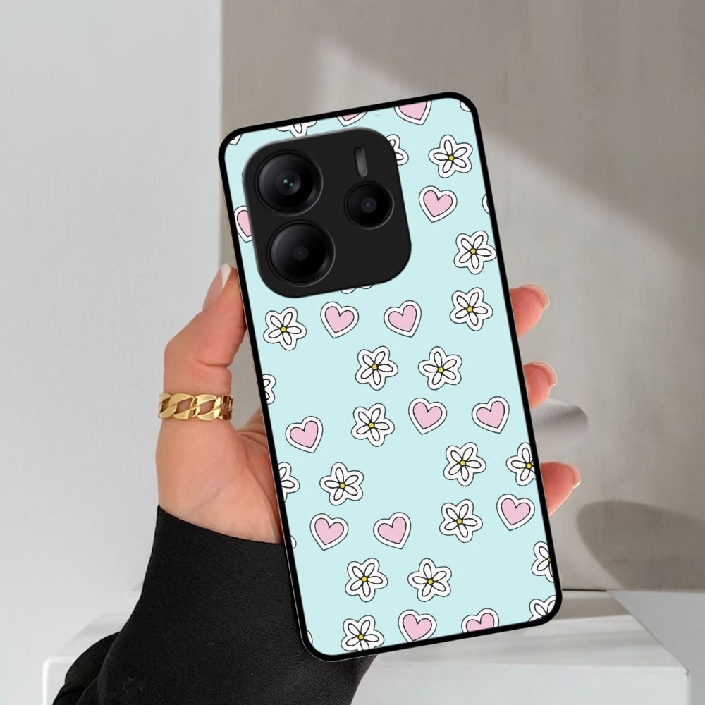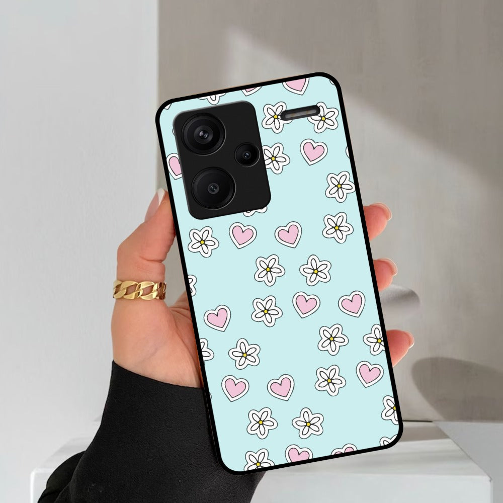 Heart With Flower Glossy Metal Case Cover For Redmi