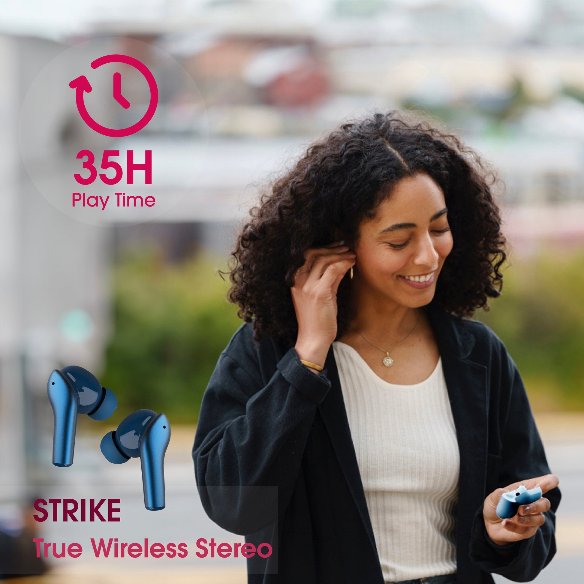 Experience unmatched audio clarity and power with Strike Earbuds. Designed for audiophiles, gamers, and professionals alike, these earbuds blend cutting-edge technology with comfort and style. With up to 40 hours of playtime, Quad Mic noise cancellation, and powerful Ebel Drivers, enjoy immersive sound whether you're on a call, in a workout, or deep in gameplay.