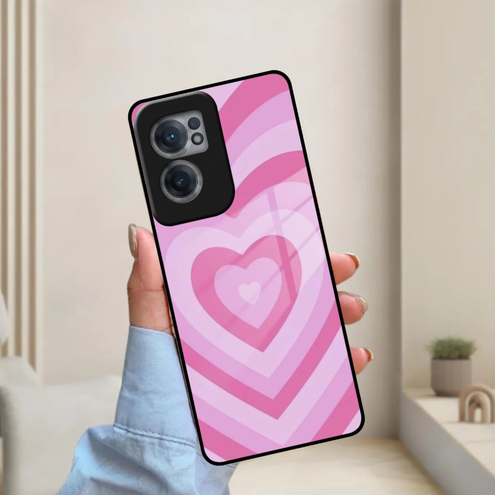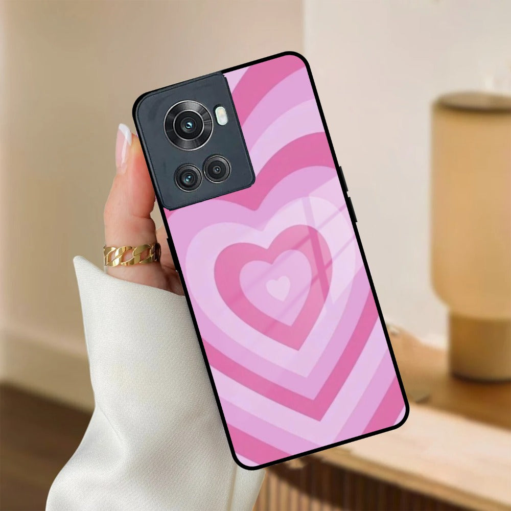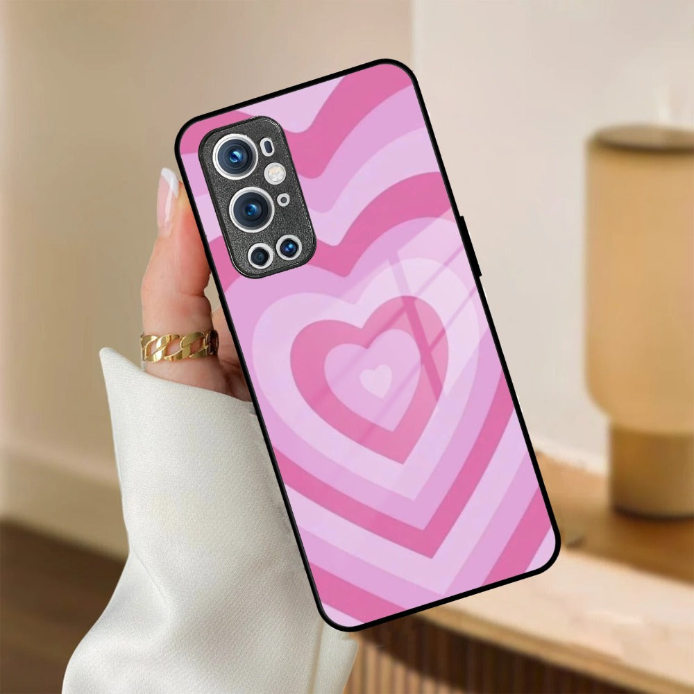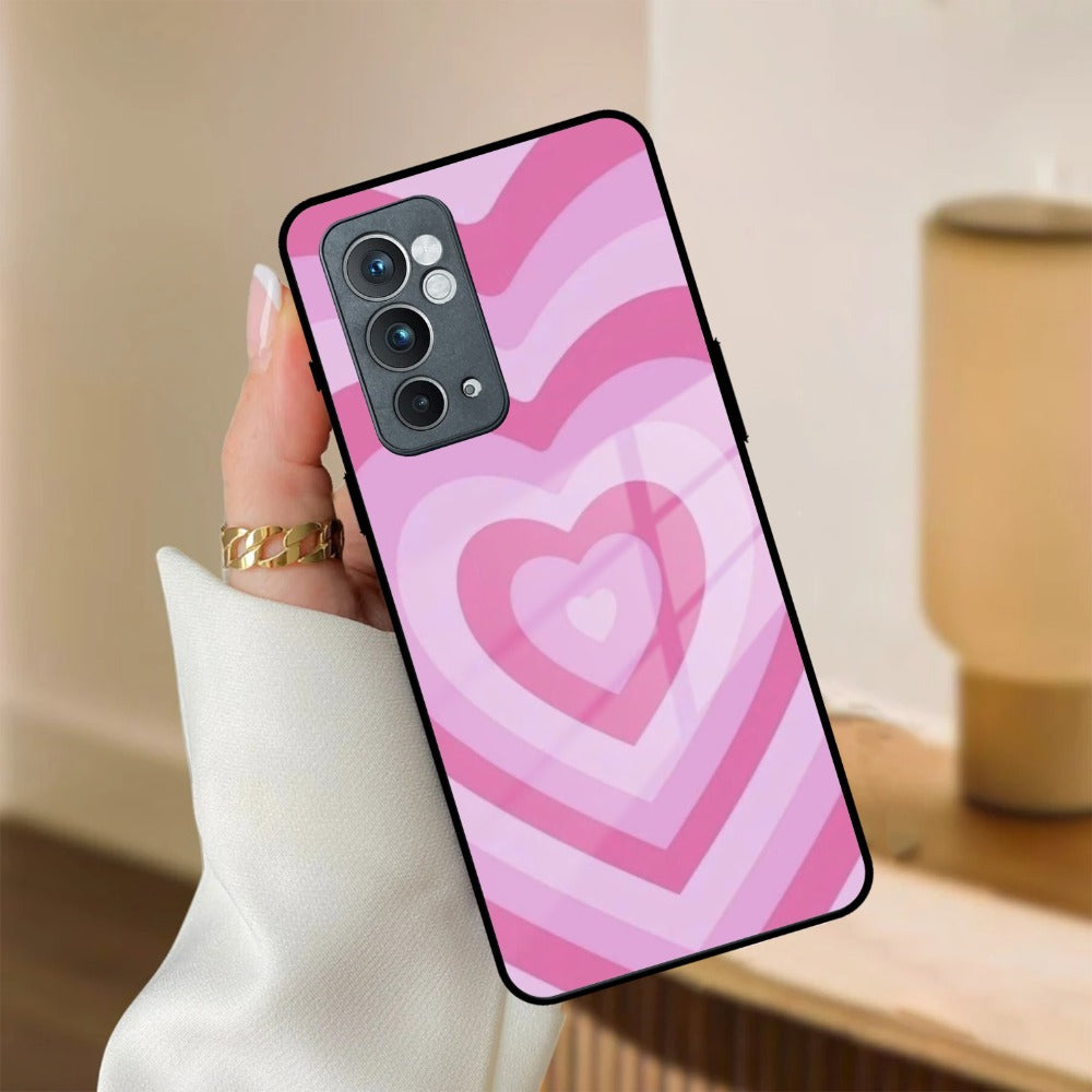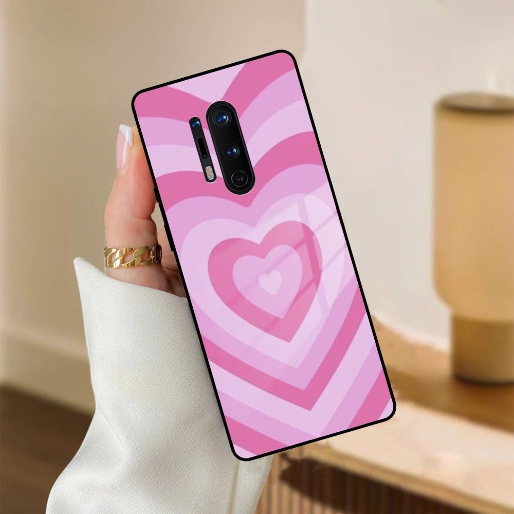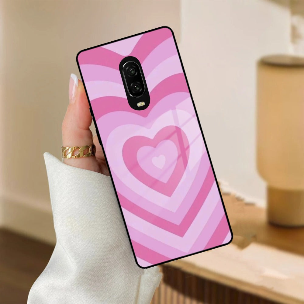 Latte Love Patter Glass Case Cover - Pink For OnePlus