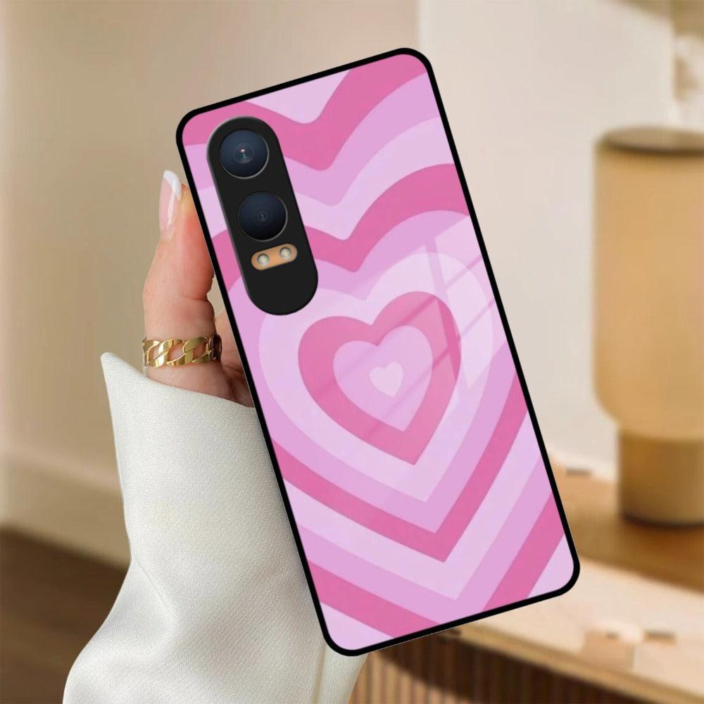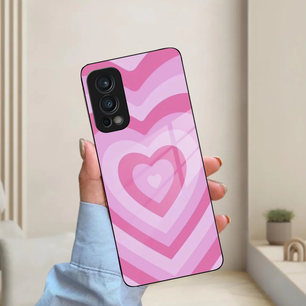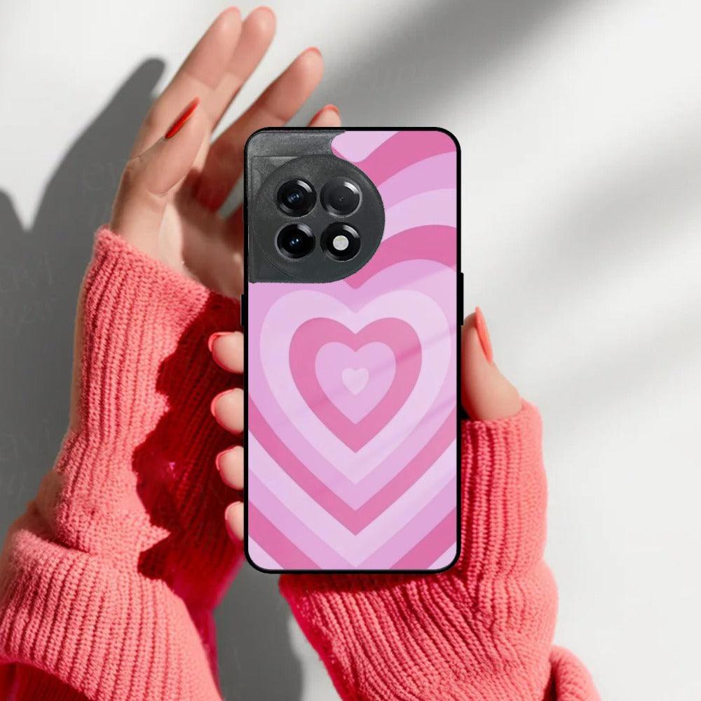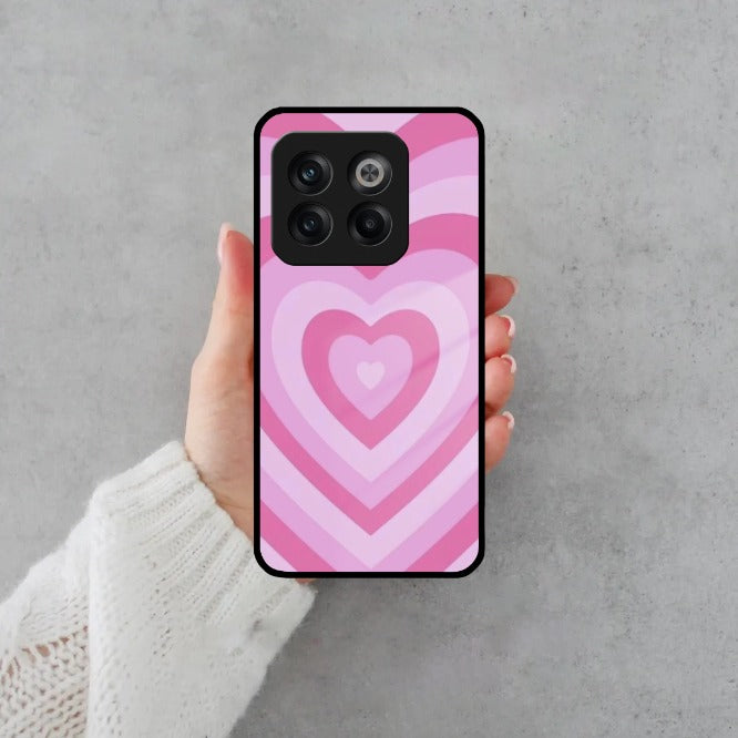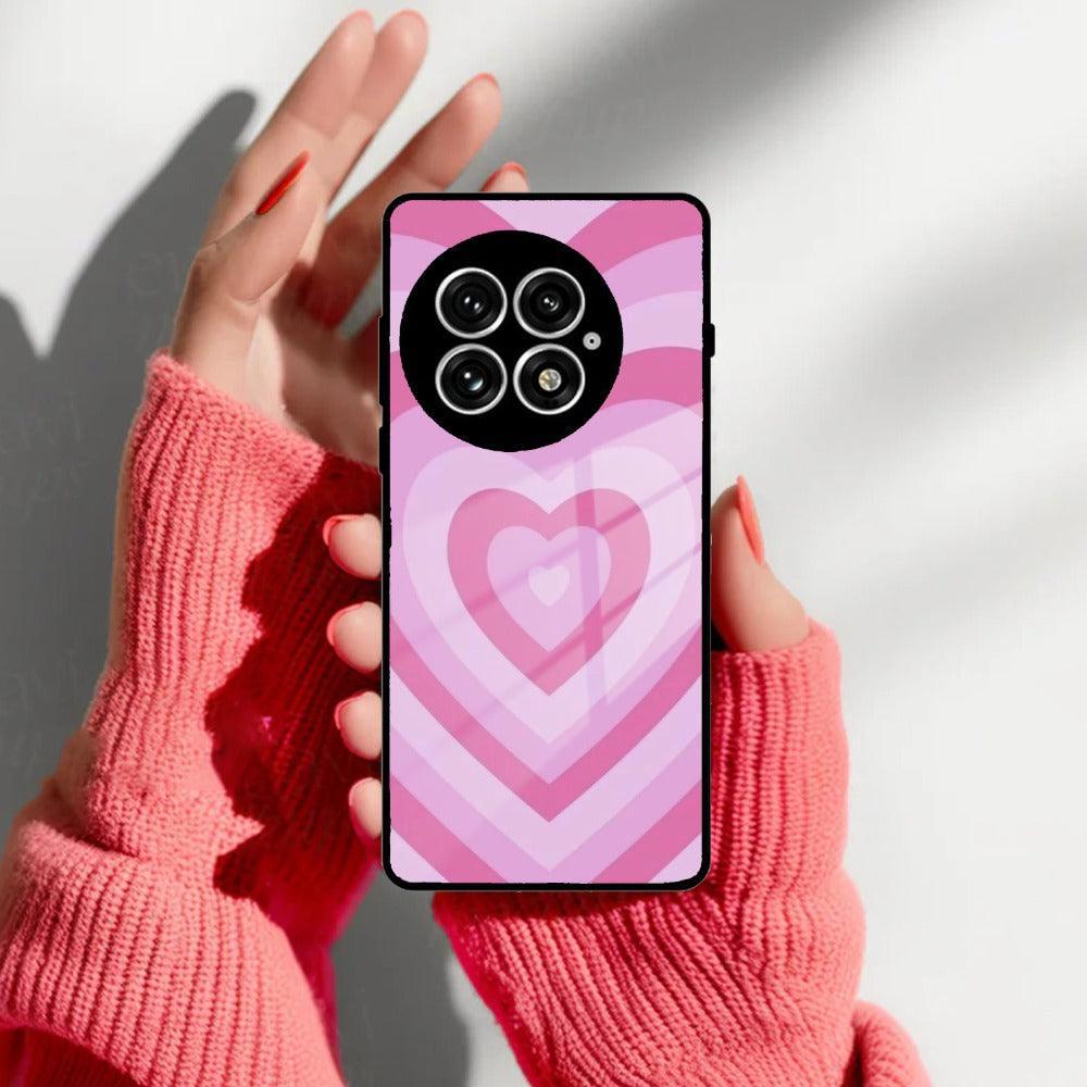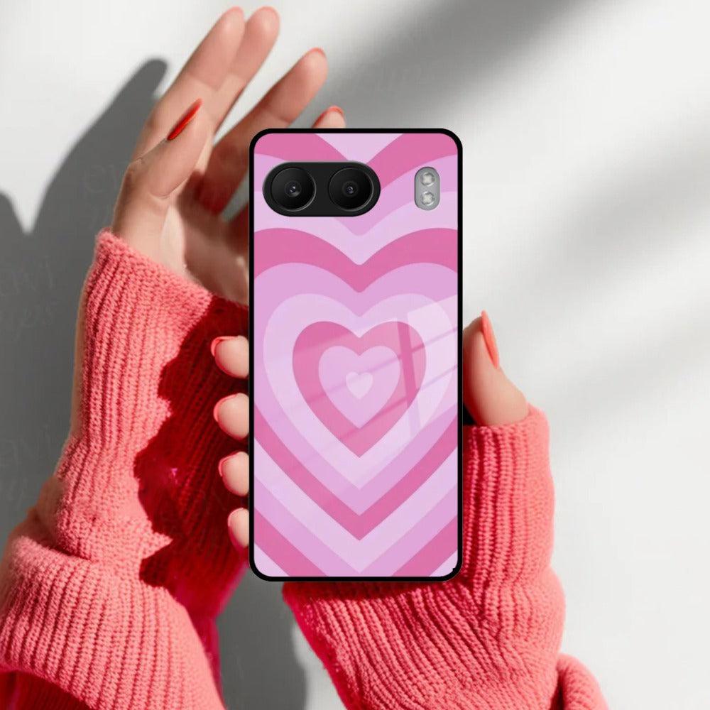 Latte Love Patter Glass Case Cover - Pink For OnePlus