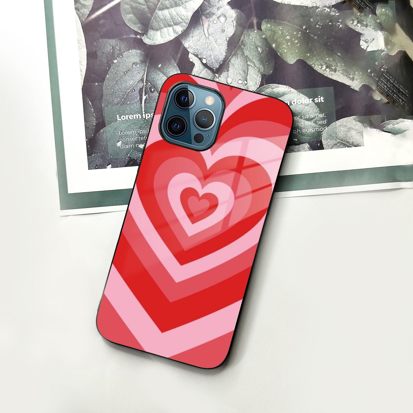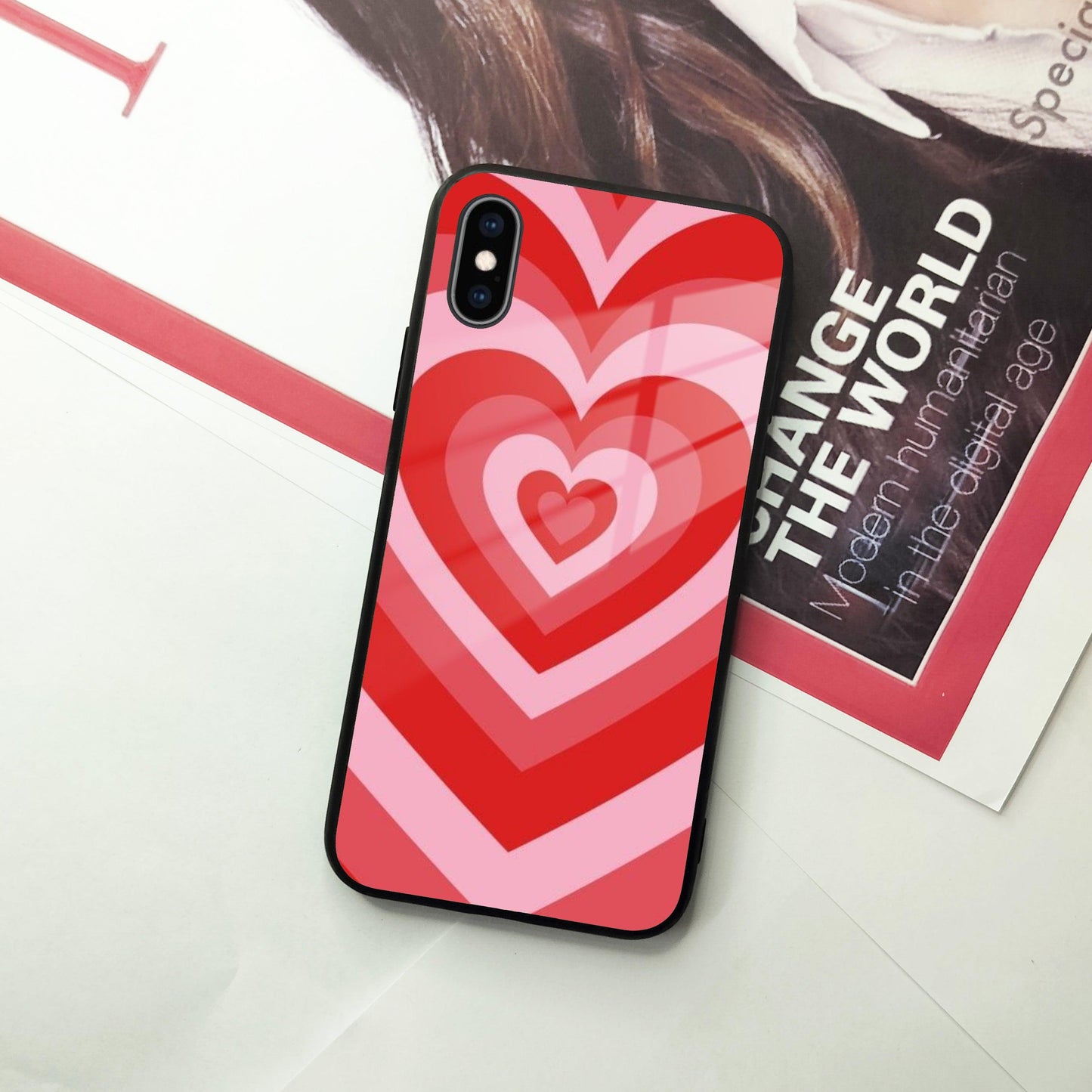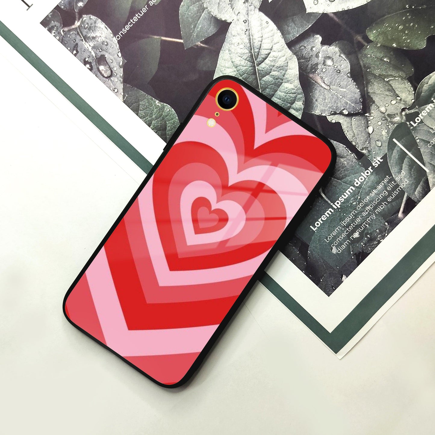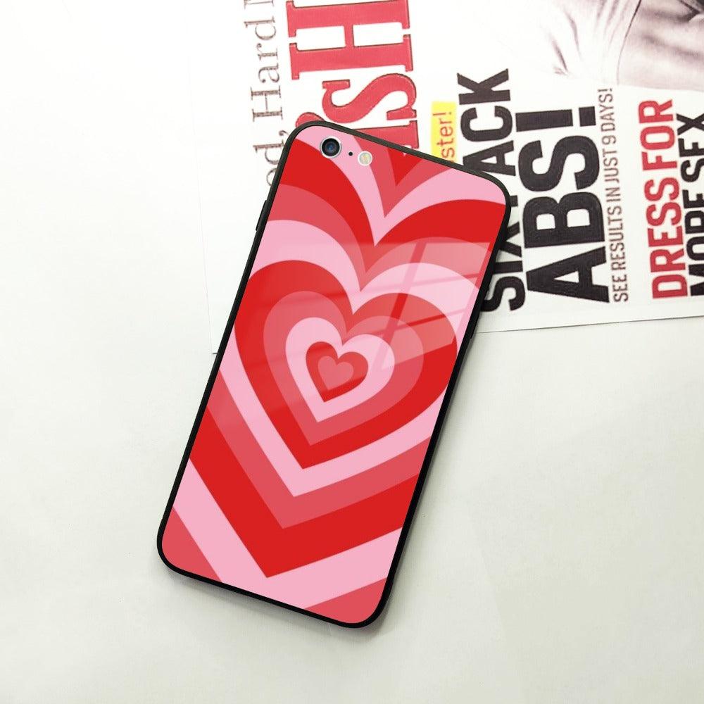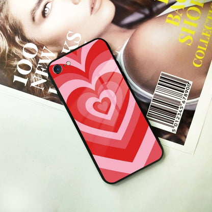 Latte Love Patter Glass Case Cover - Red For iPhone