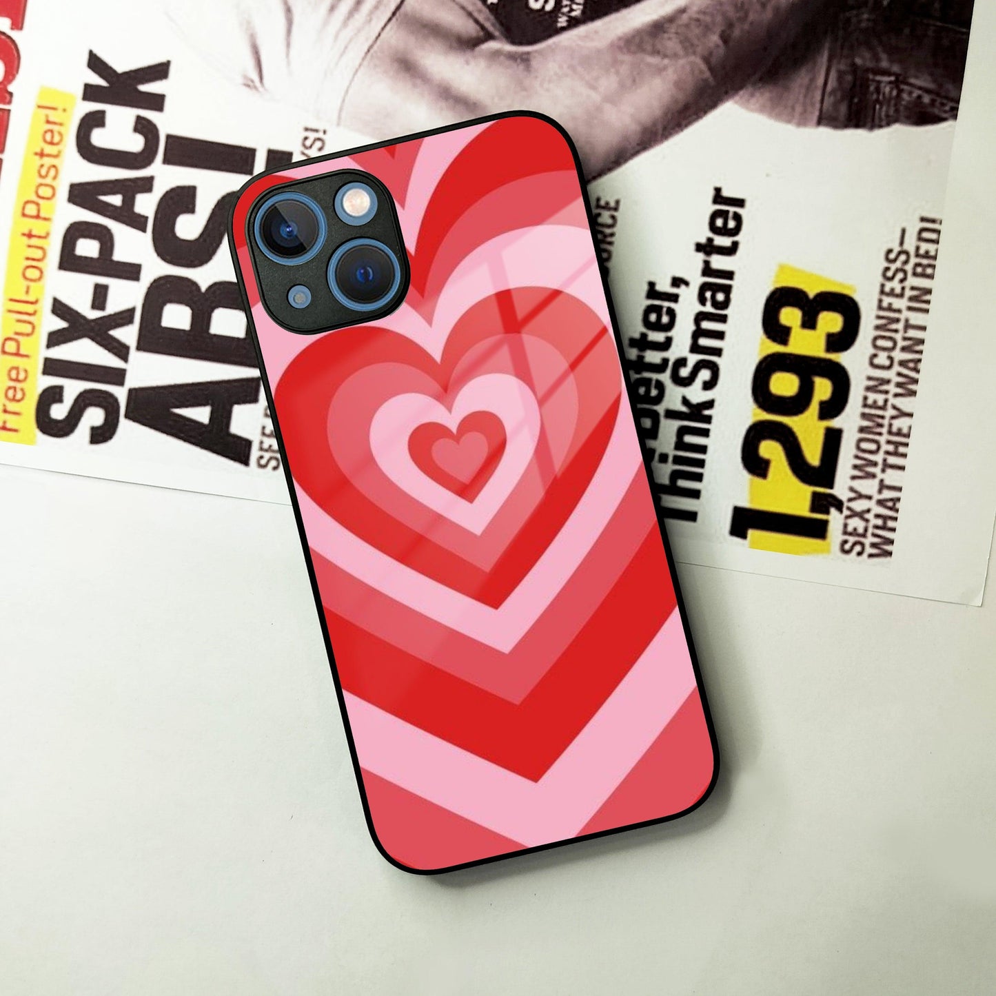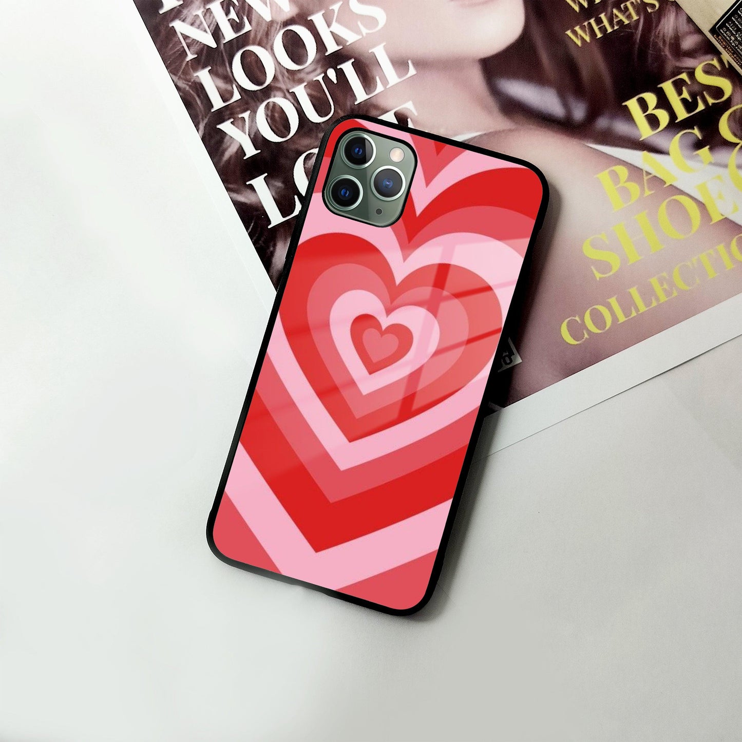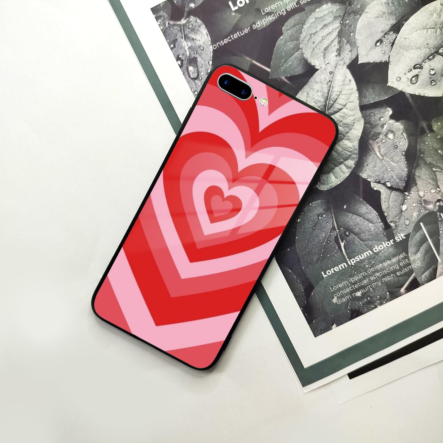 Latte Love Patter Glass Case Cover - Red For iPhone