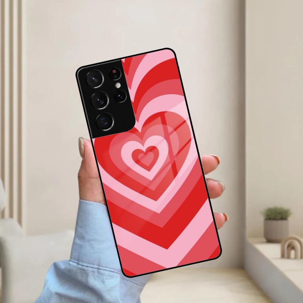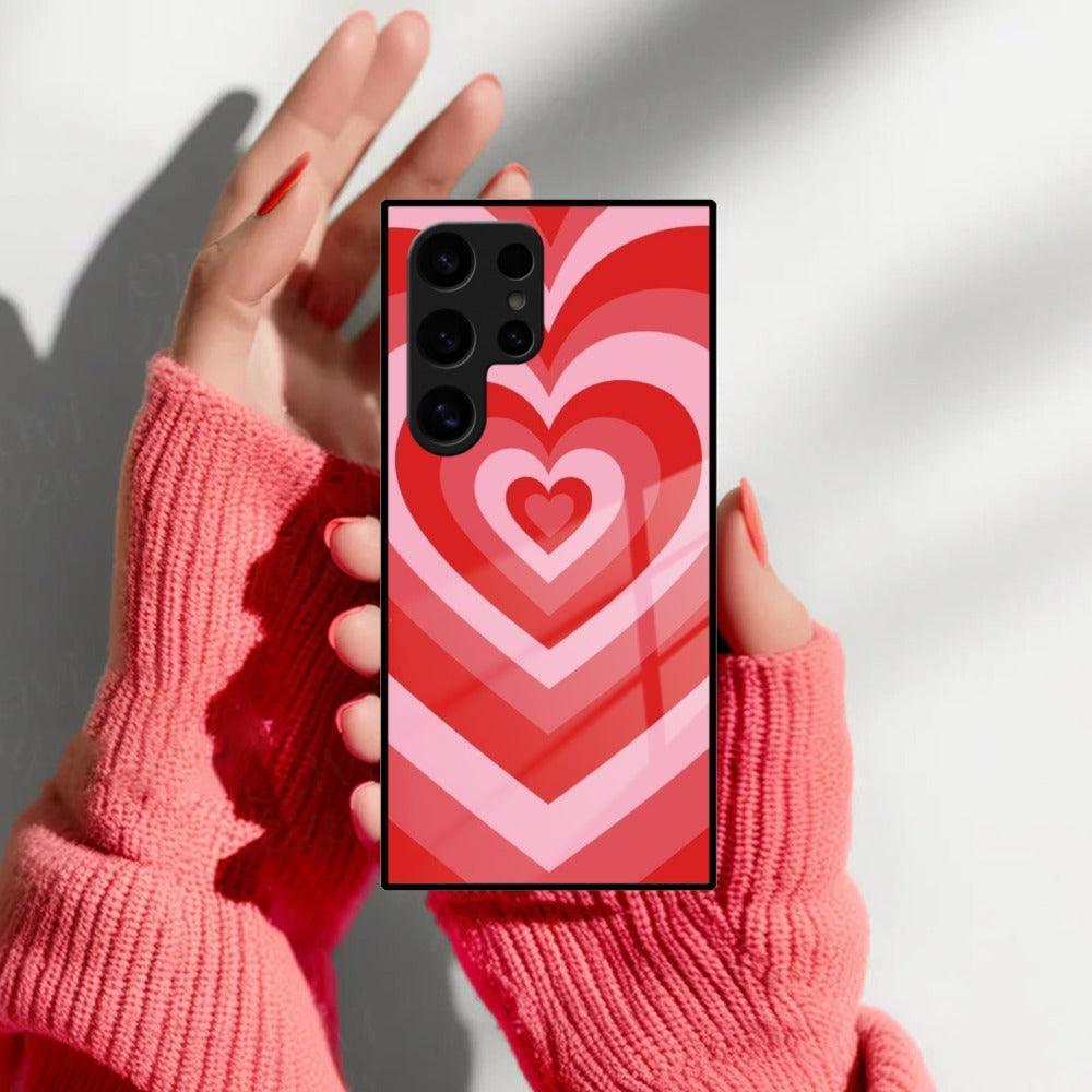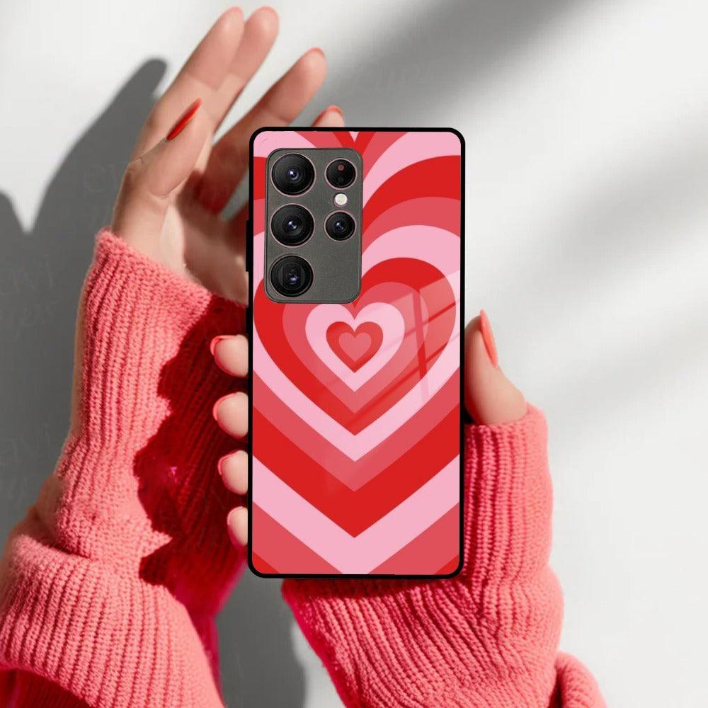 Latte Love Patter Glass Case Cover - Red For Samsung