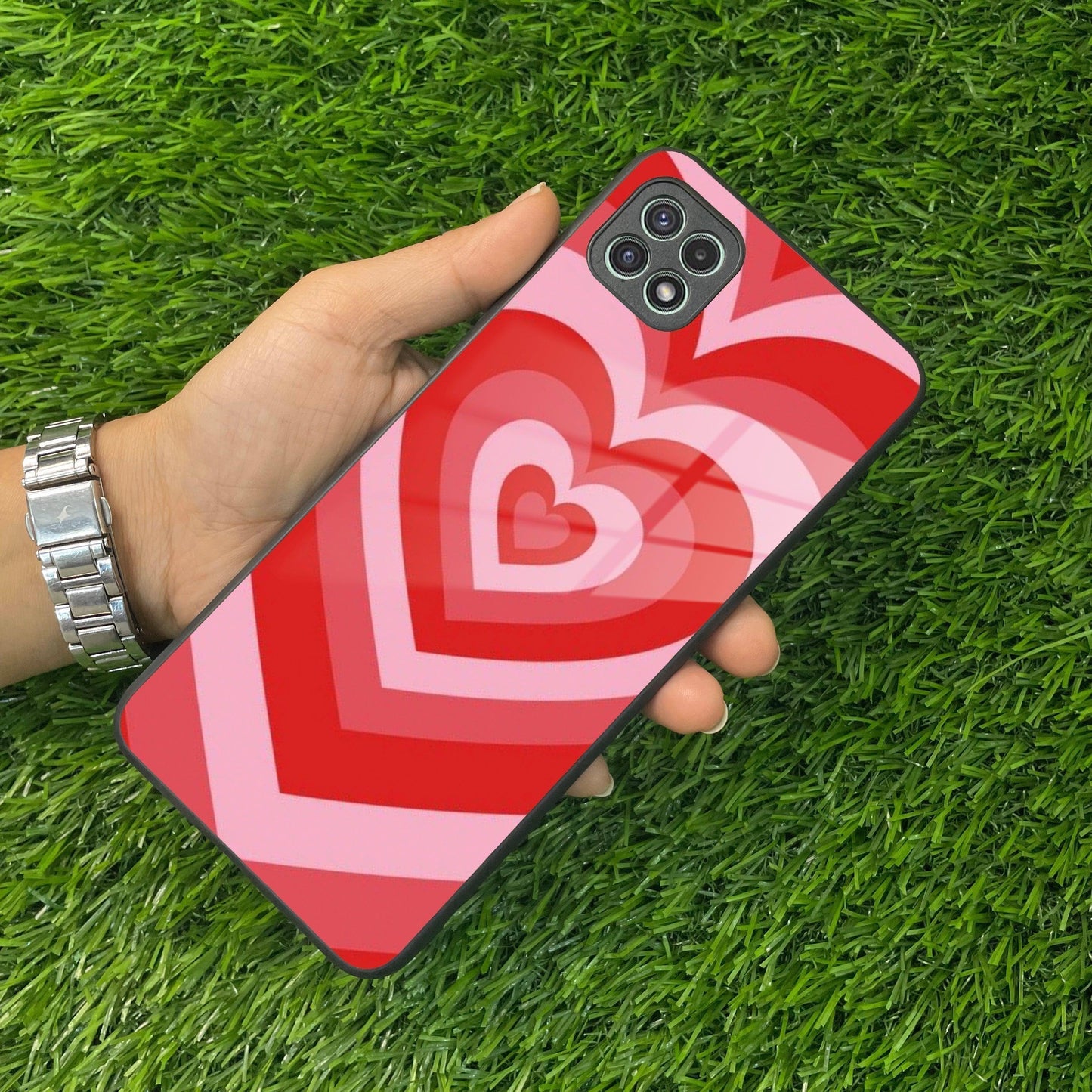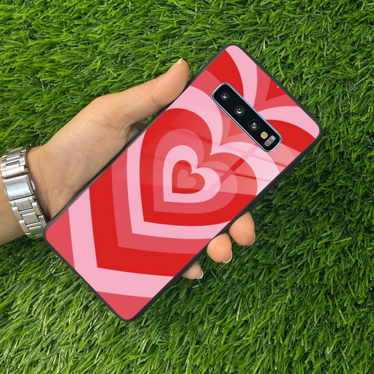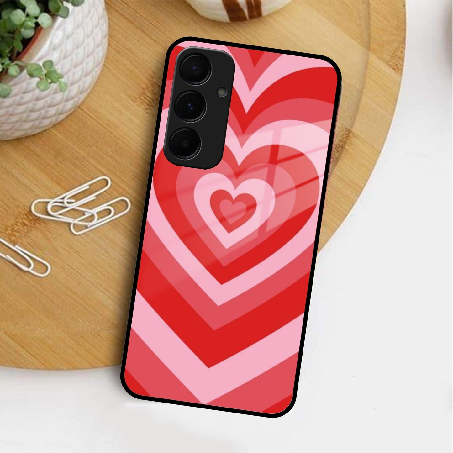 Latte Love Patter Glass Case Cover - Red For Samsung