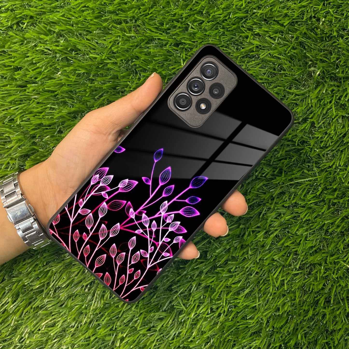 Multicolor Flower Print Glass Case Cover For Samsung