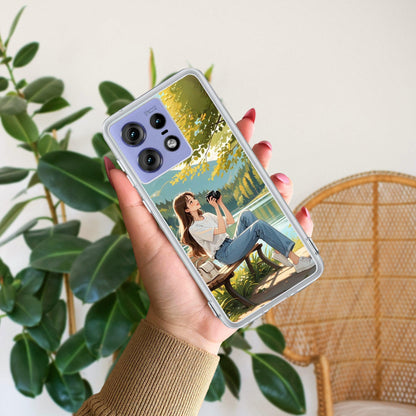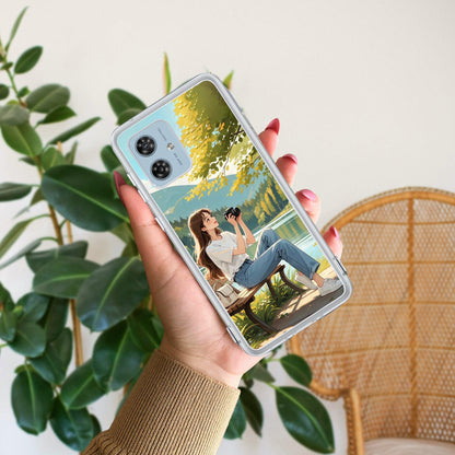 Protect your Motorola phone with this customizable transparent silicon case. The sleek design showcases your individual style, while the durable material provides reliable protection. With a perfect fit for your device, this case allows for easy access to all features. Personalize your phone and keep it safe with this couple-themed case.