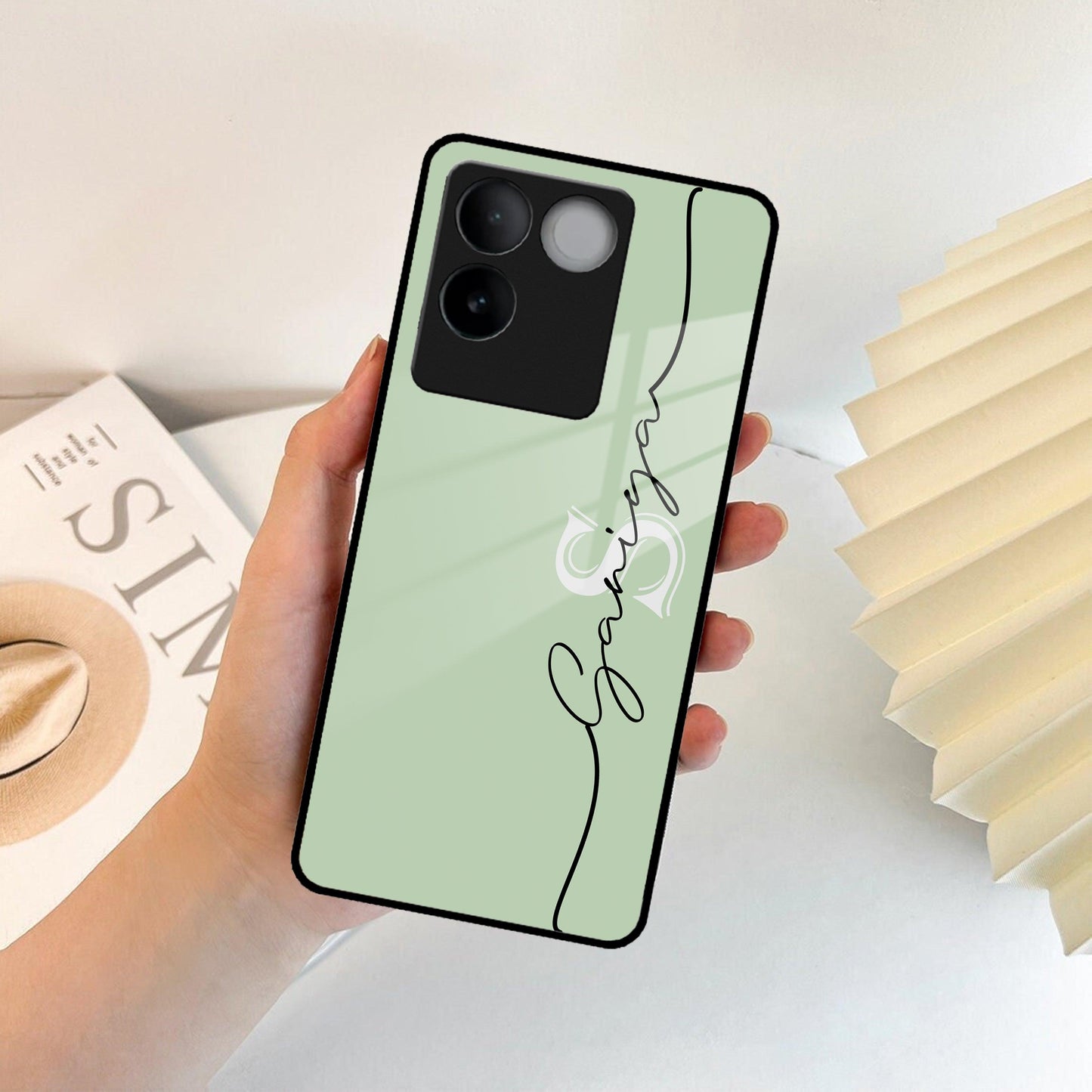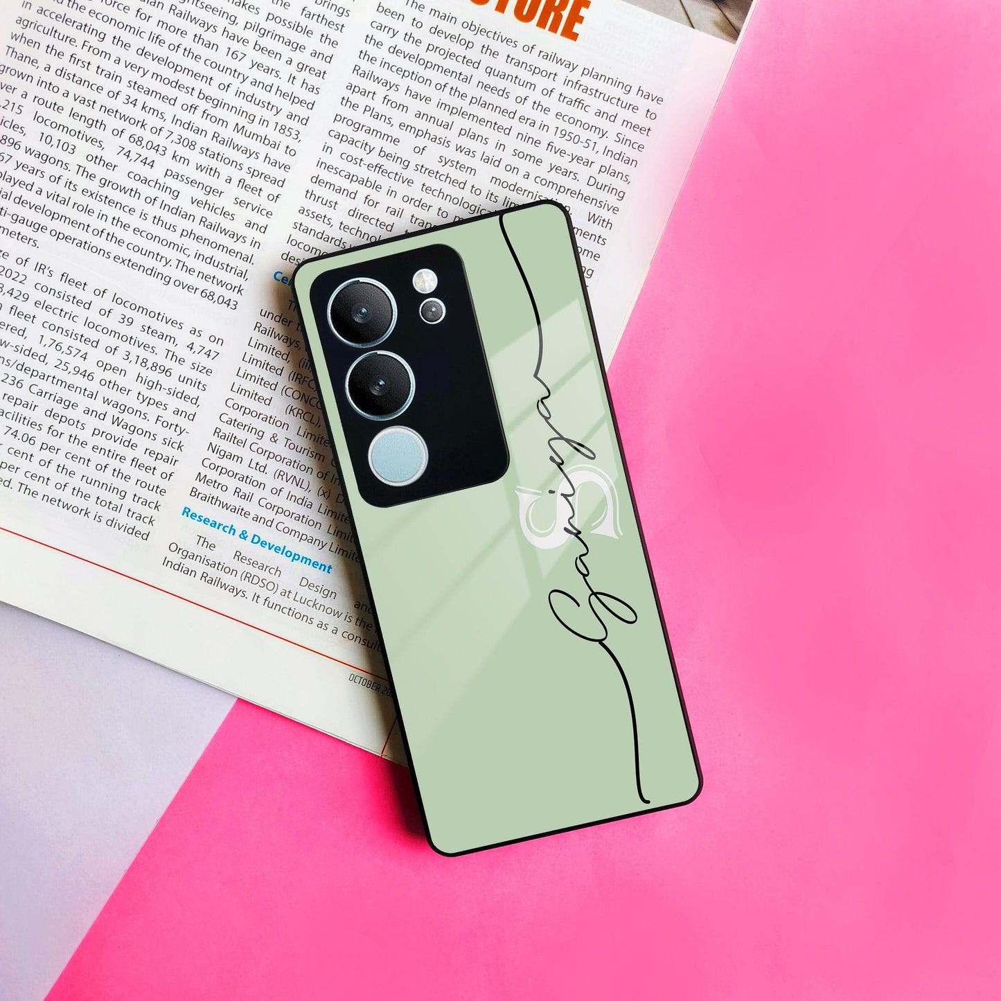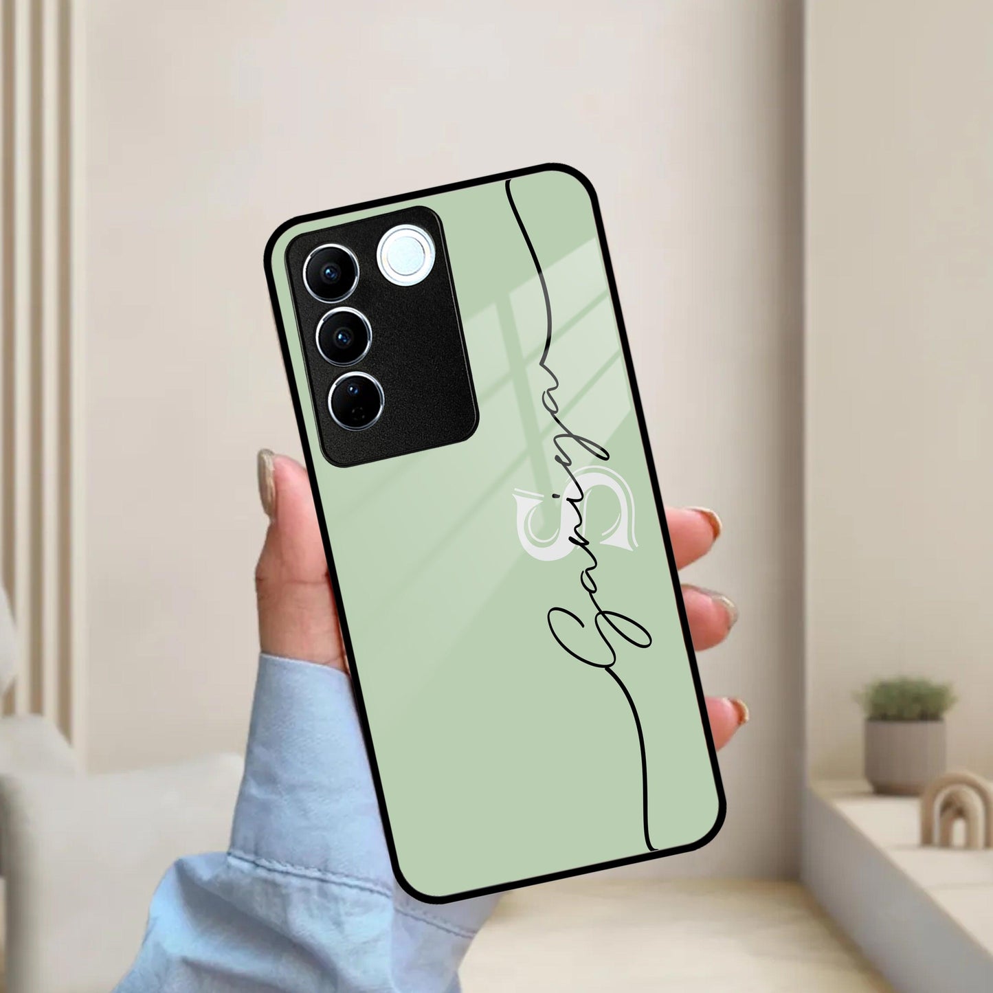Personalized Initials Mint Green Glossy Metal Case Cover For Vivo