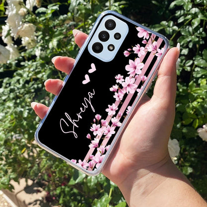 Pink Floral Customize Transparent Silicon Case For Samsung