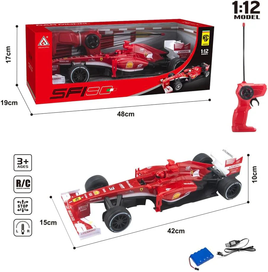 - 1:12 scale remote control car with iconic Ferrari F1 styling