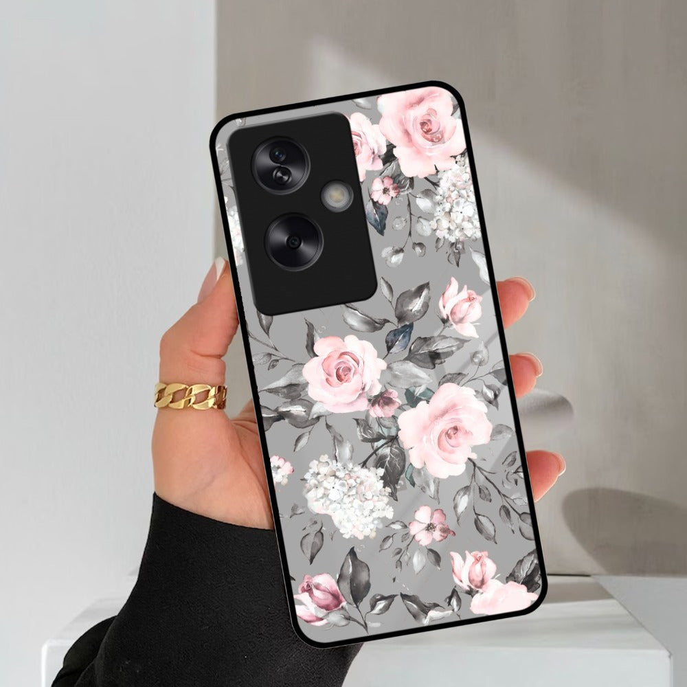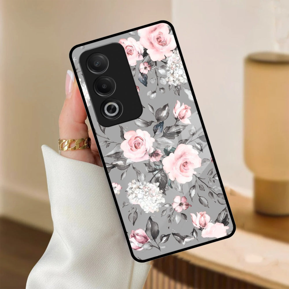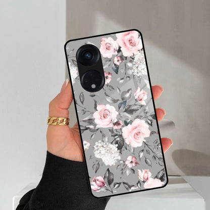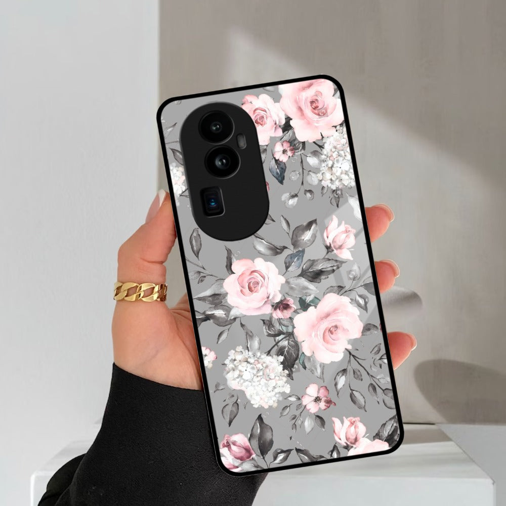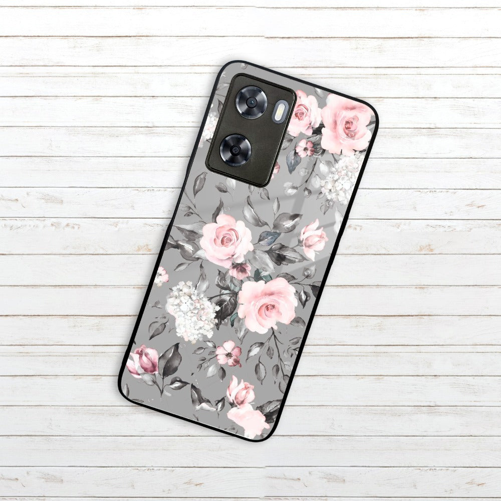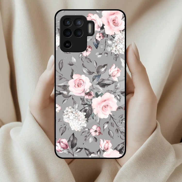Retro Floral Glossy Glass Case Cover V2 For Oppo