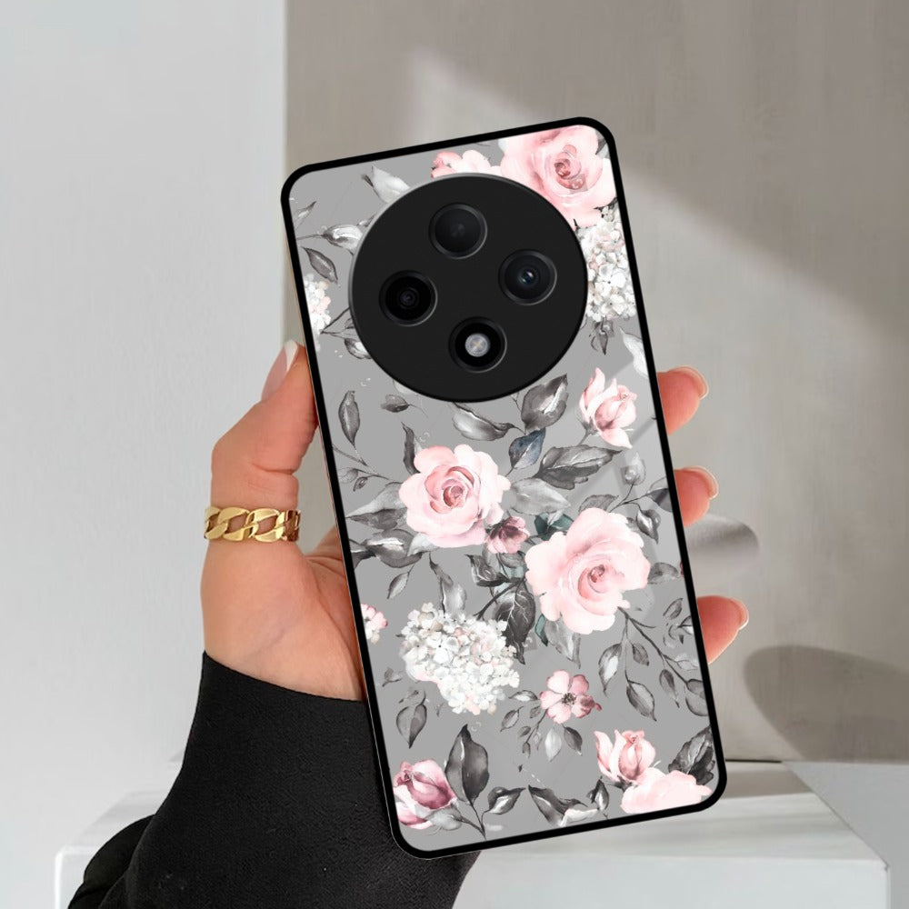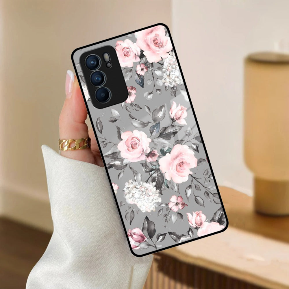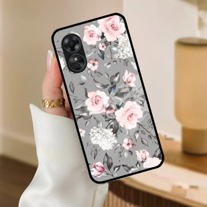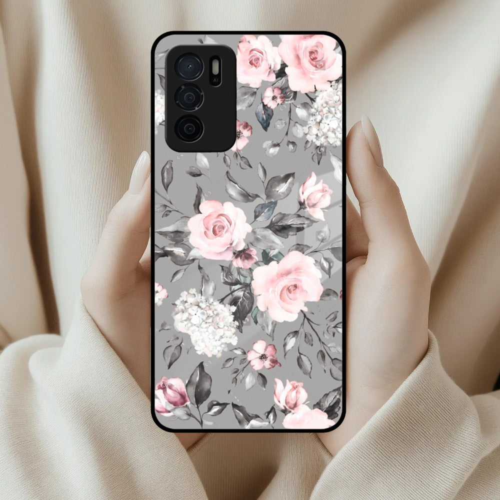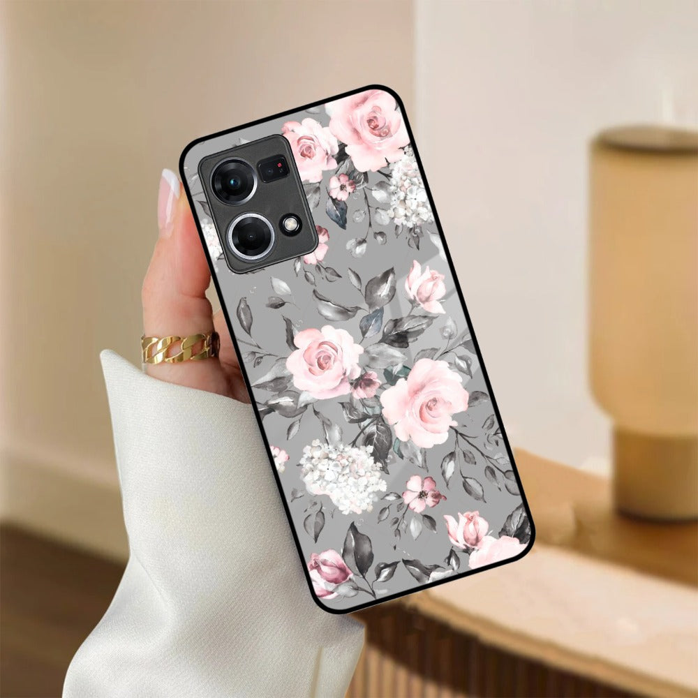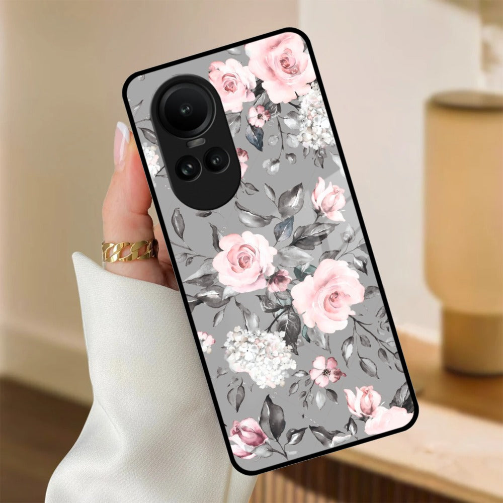 Retro Floral Glossy Glass Case Cover V2 For Oppo