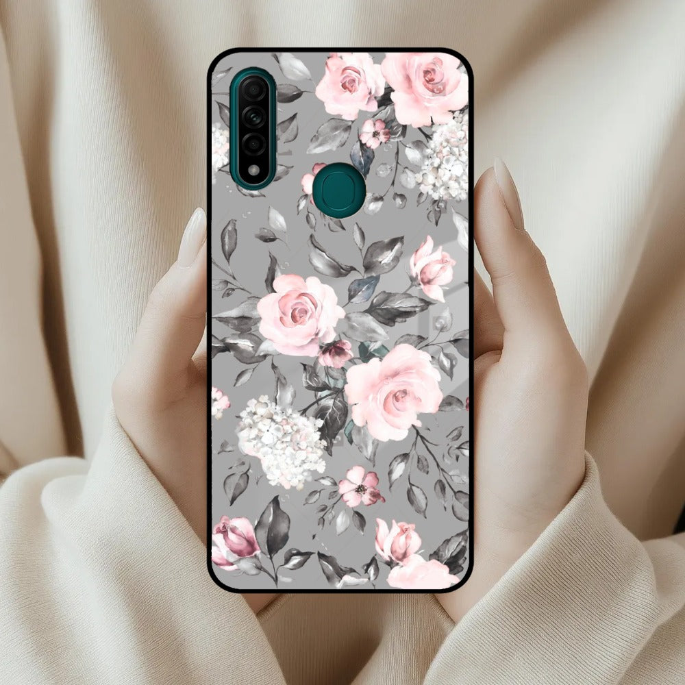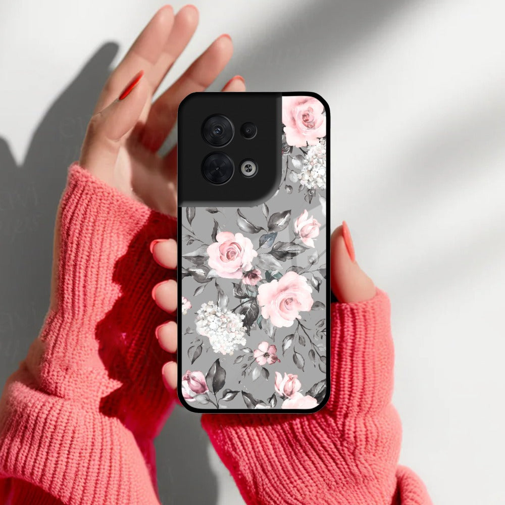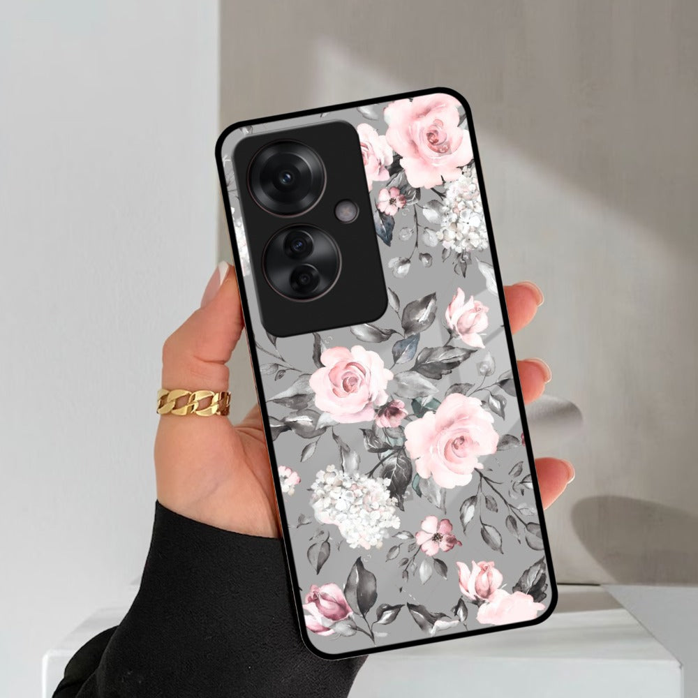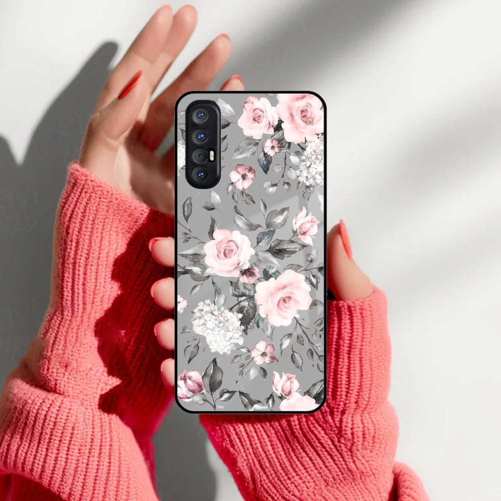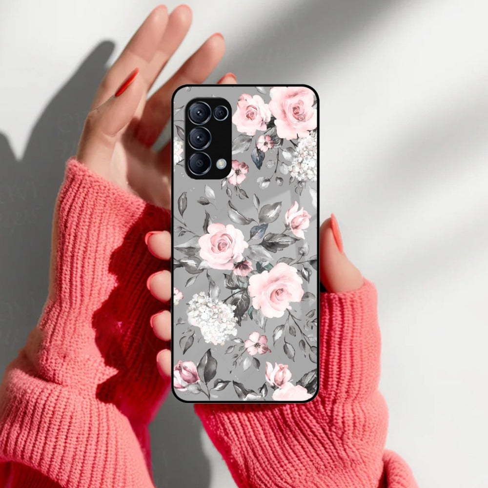 Retro Floral Glossy Glass Case Cover V2 For Oppo