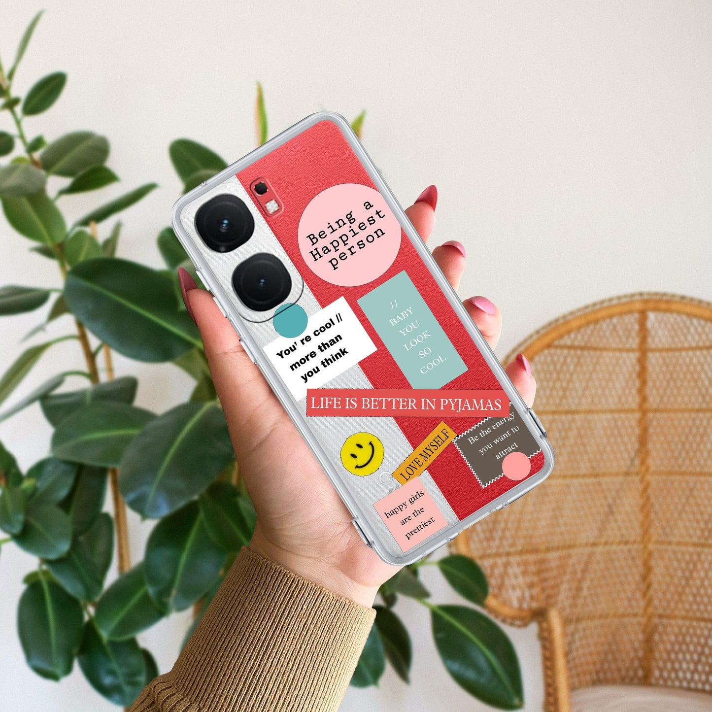 Stickers Happiest Person Transparent Silicon Case Peach For iQOO