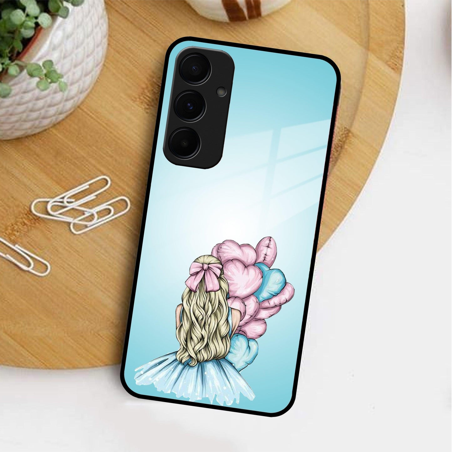Styles Girl With Balloon Glass Case For Samsung